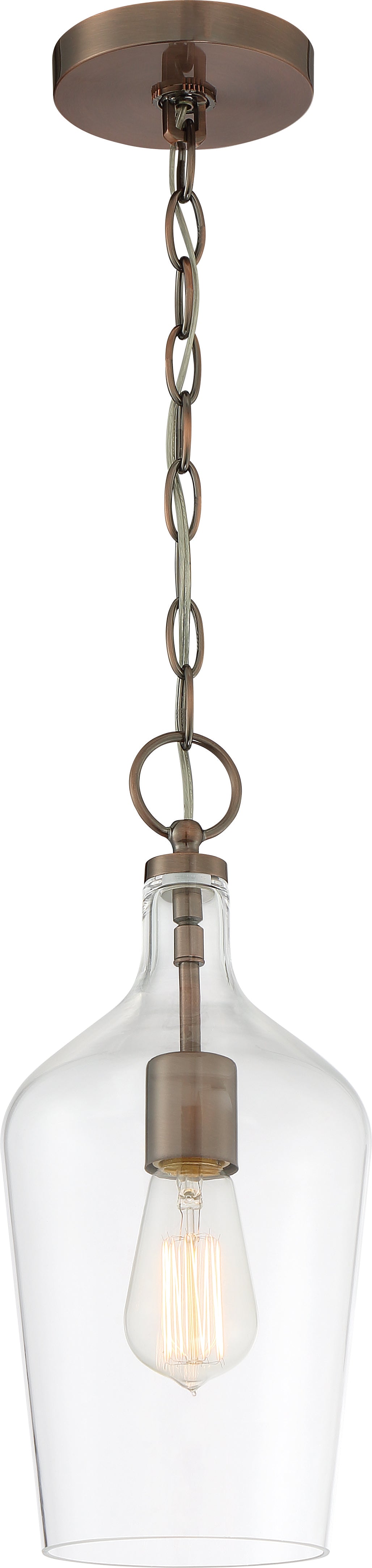 Hartley creates a flattering and refined version of the single A19 fixture bottle pendant. The oversized glass shade and A19 vintage bulb capture the glass with a wide ring and looped chain giving an air of sophistication to the artisan favorite.