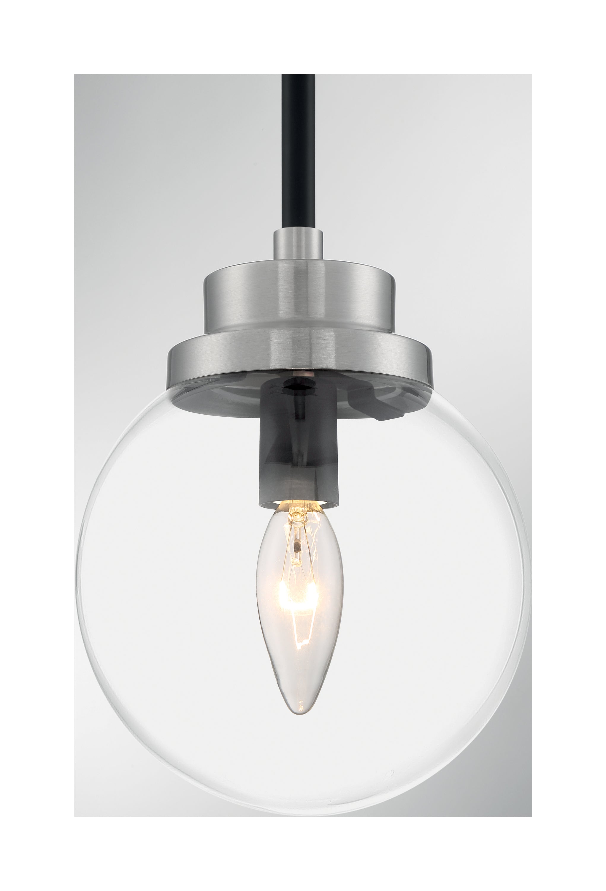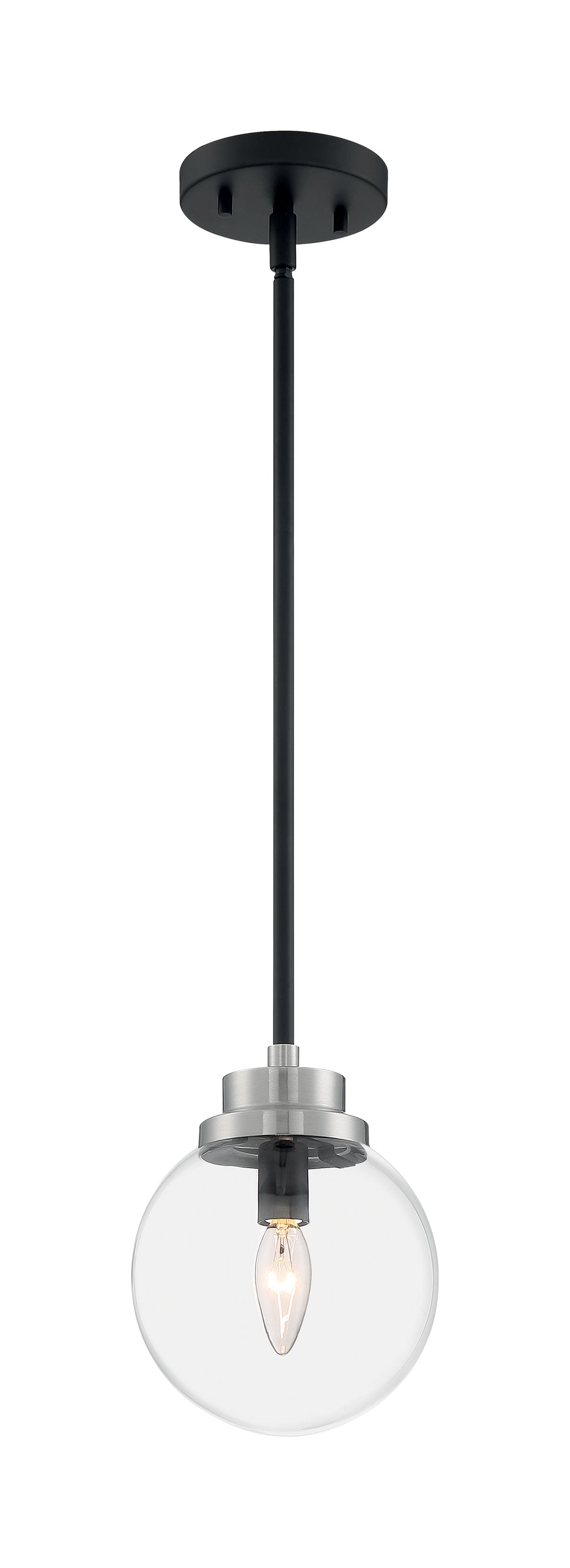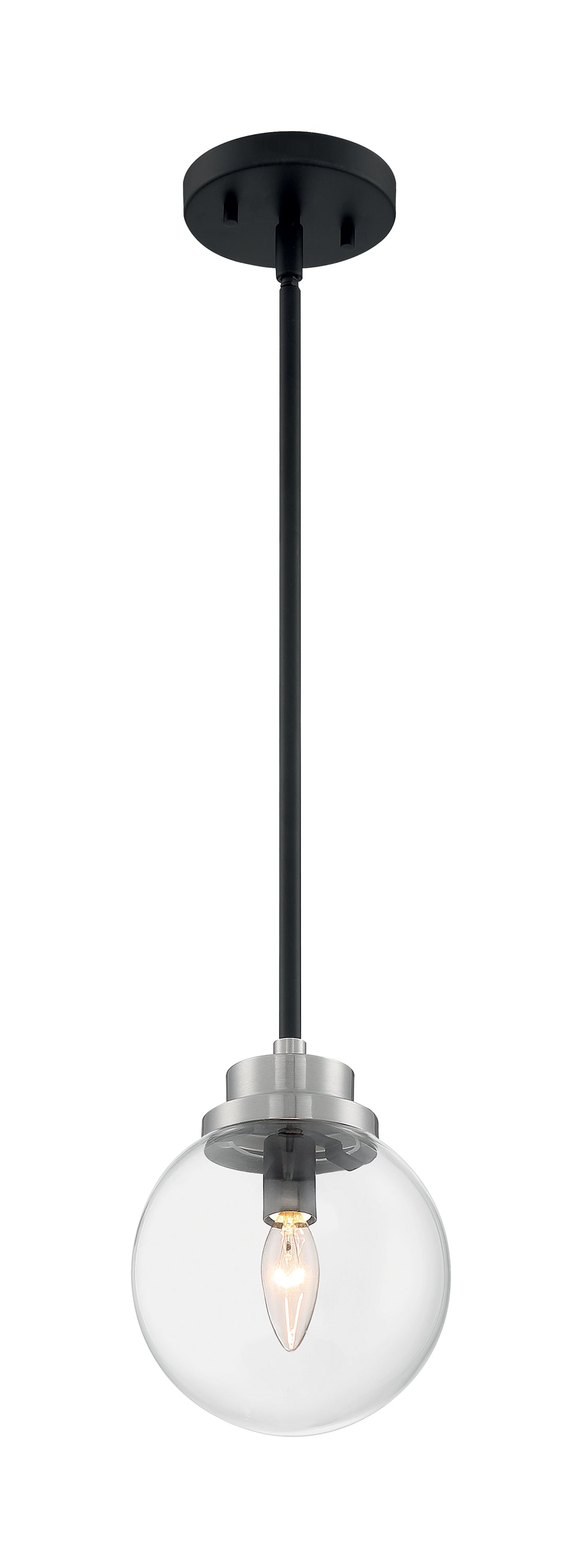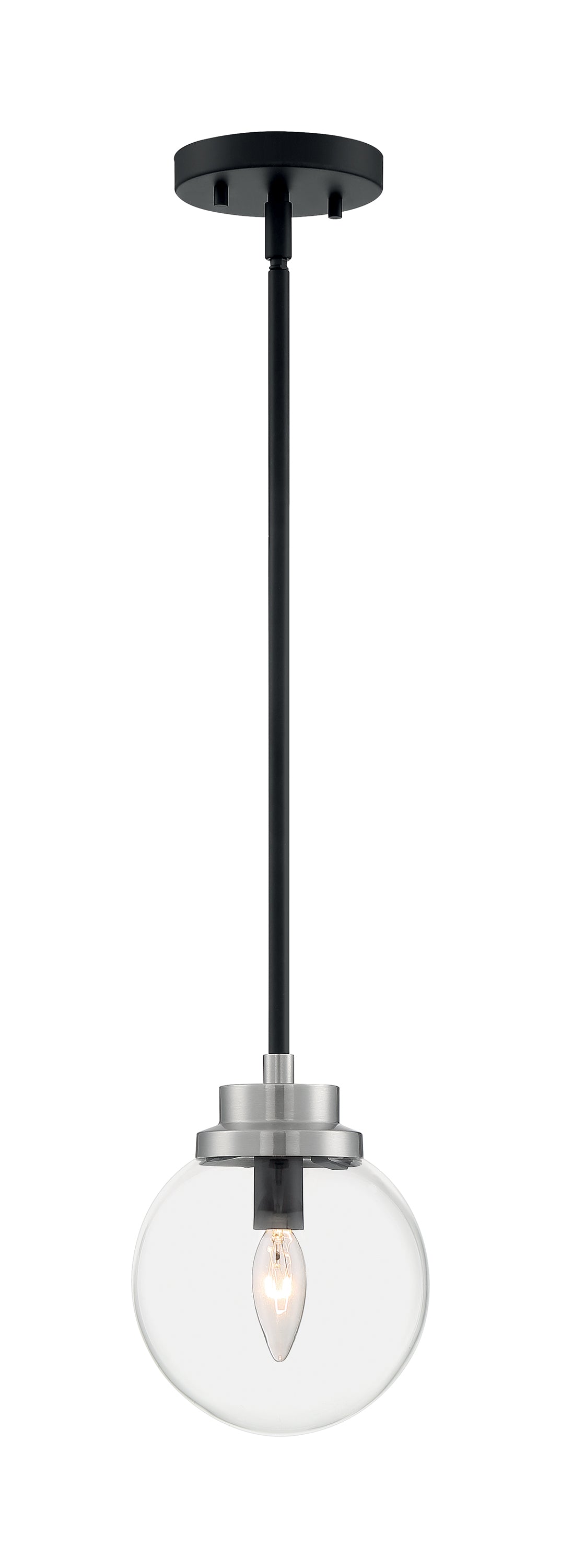 The one-light Axis pendant has a distinct finish combination of Matte Black with a Brushed Nickel shade holder. The clear globe accents the minimalist appeal of this series and will fit in a variety of design styles ranging from mid-century modern to clean contemporary designs. At 7.750 inches diameter, this allows for multiple pendants over an island or used individually in a nook.