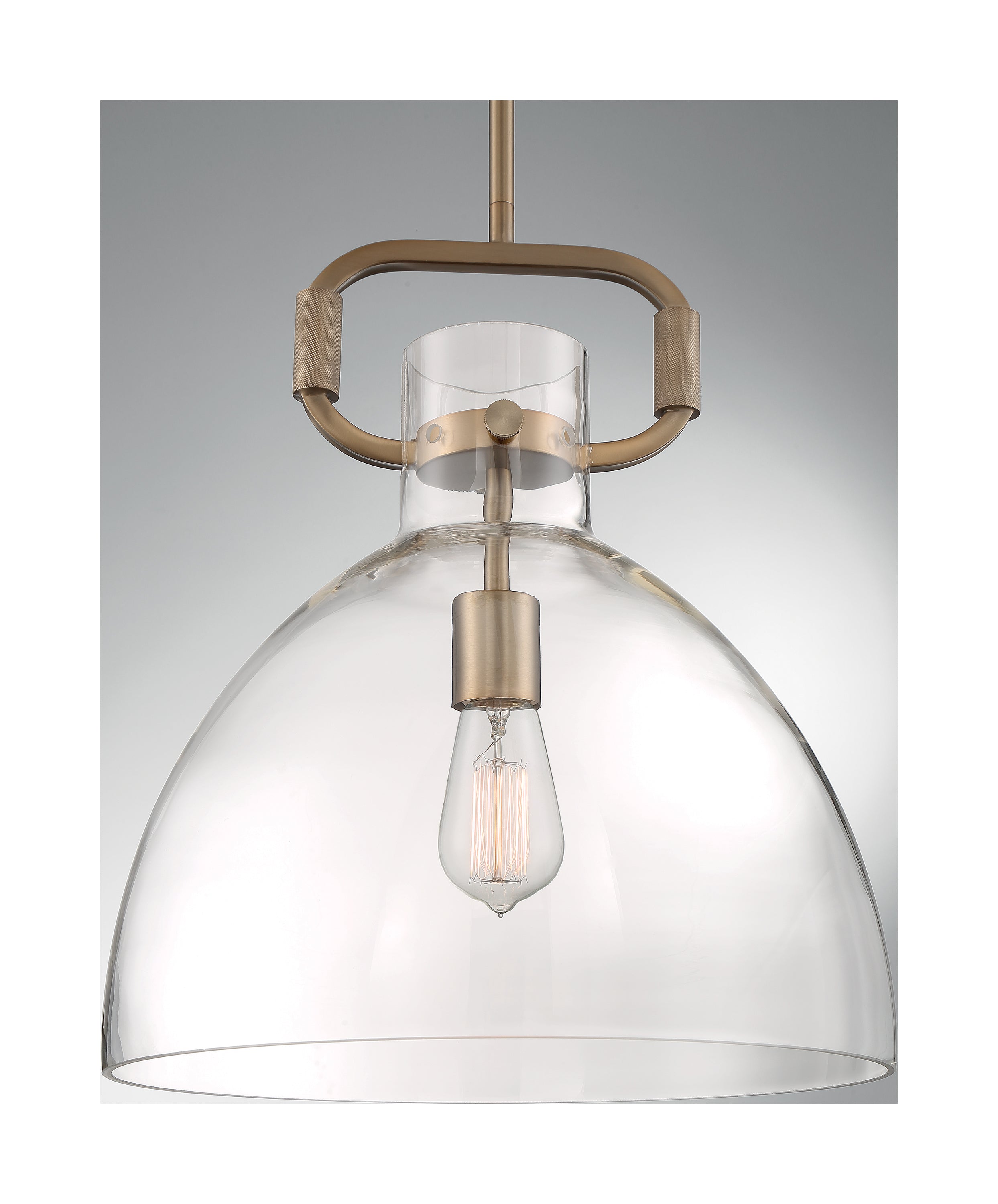 The Teresa Pendant features retro-industrial style with its impressive, understated design. The Burnished Brass finish on the base flows seamlessly around and through the clear glass shade. Pair with an Edison-style bulb to bring a nostalgic flair to a small dining area or in a linear grouping to complement a variety of applications.