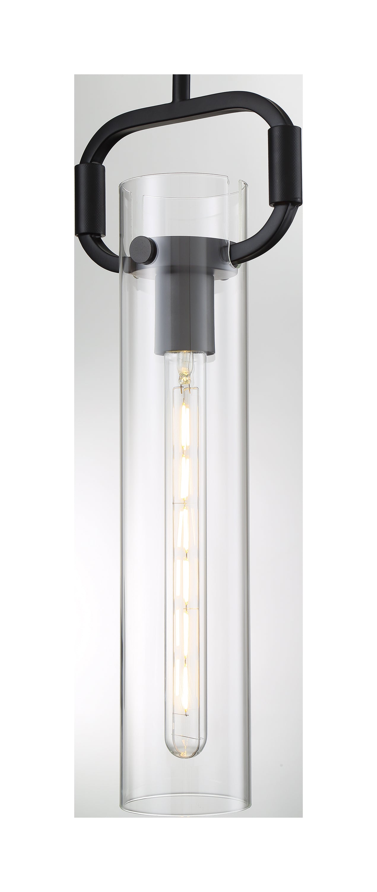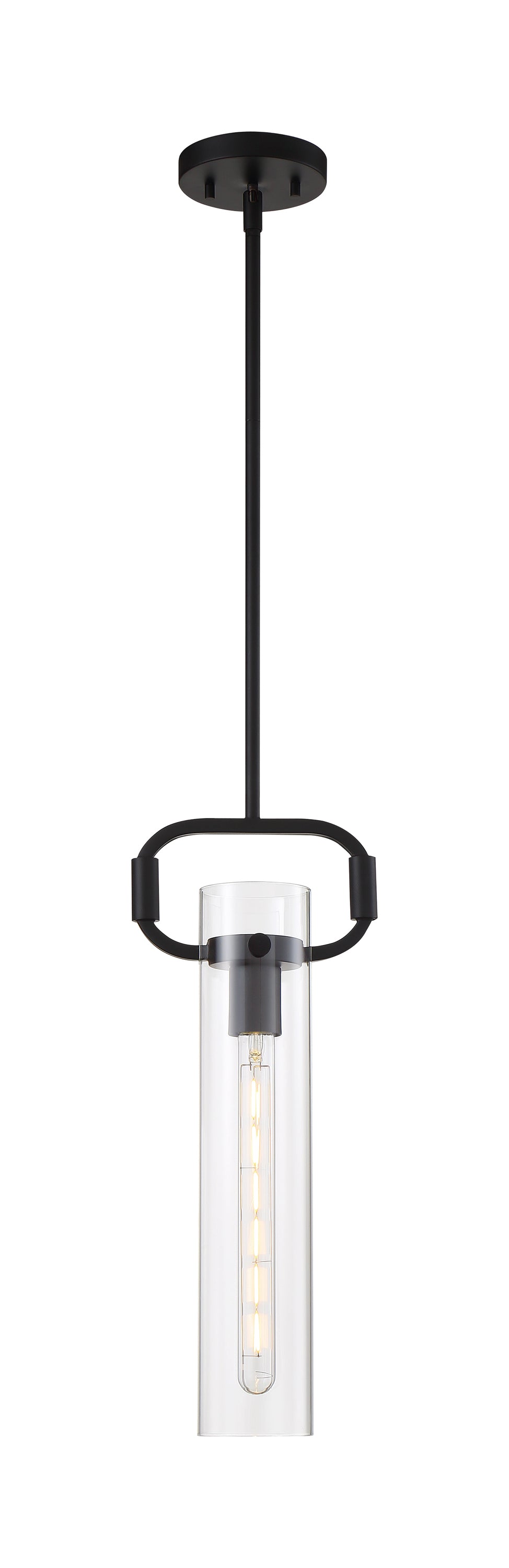 The Teresa 1 lite retro-industrial Cylinder Pendant measures 4-3/4 inches by 19-3/4 inches. With its clear glass shade and captivating transition to matte black hardware, this understated design is impressive with a nostalgic Edison Style Bulb. The Teresa Cylinder Pendant adds sophisticated style over a sink or grouped in a linear fashion that will complement many applications.