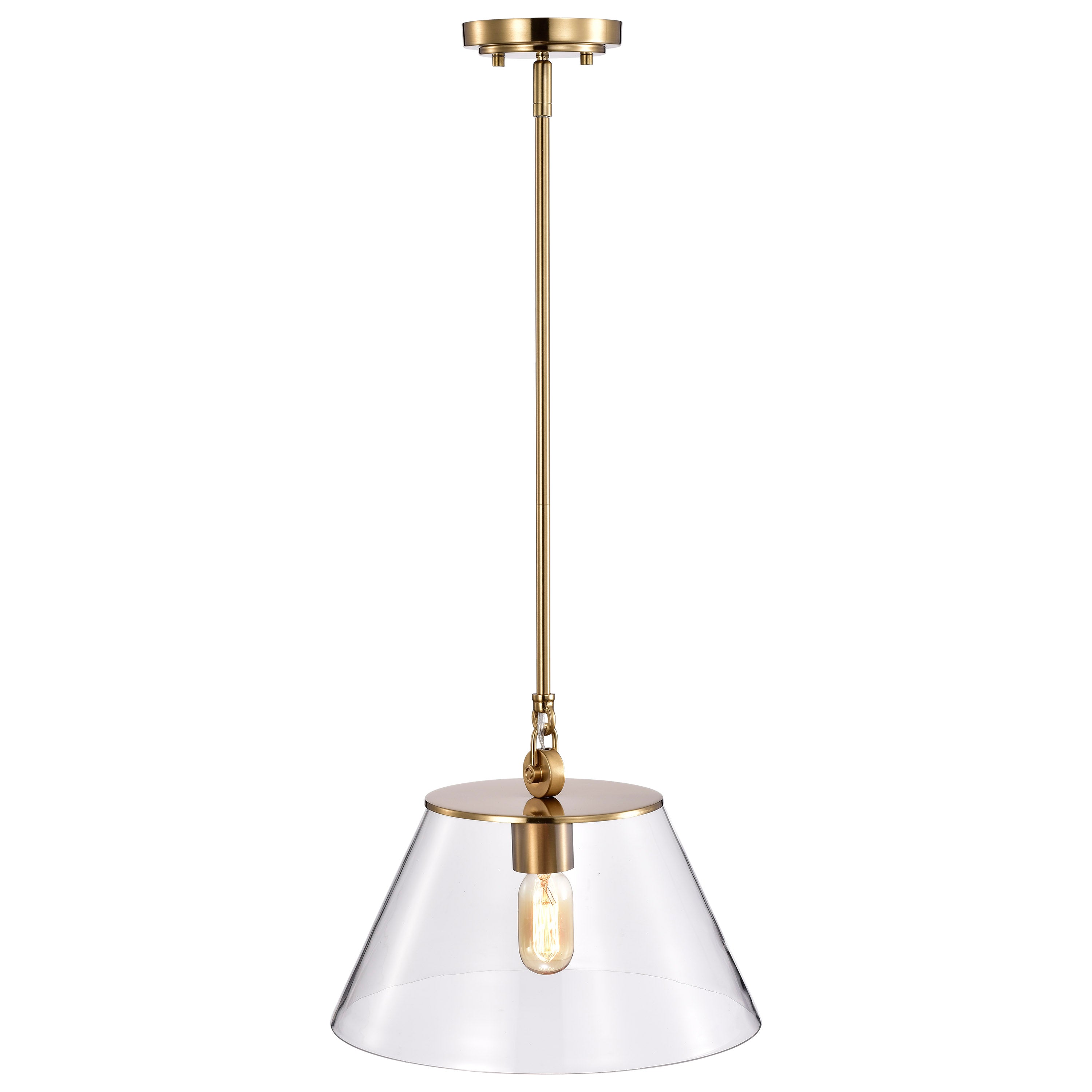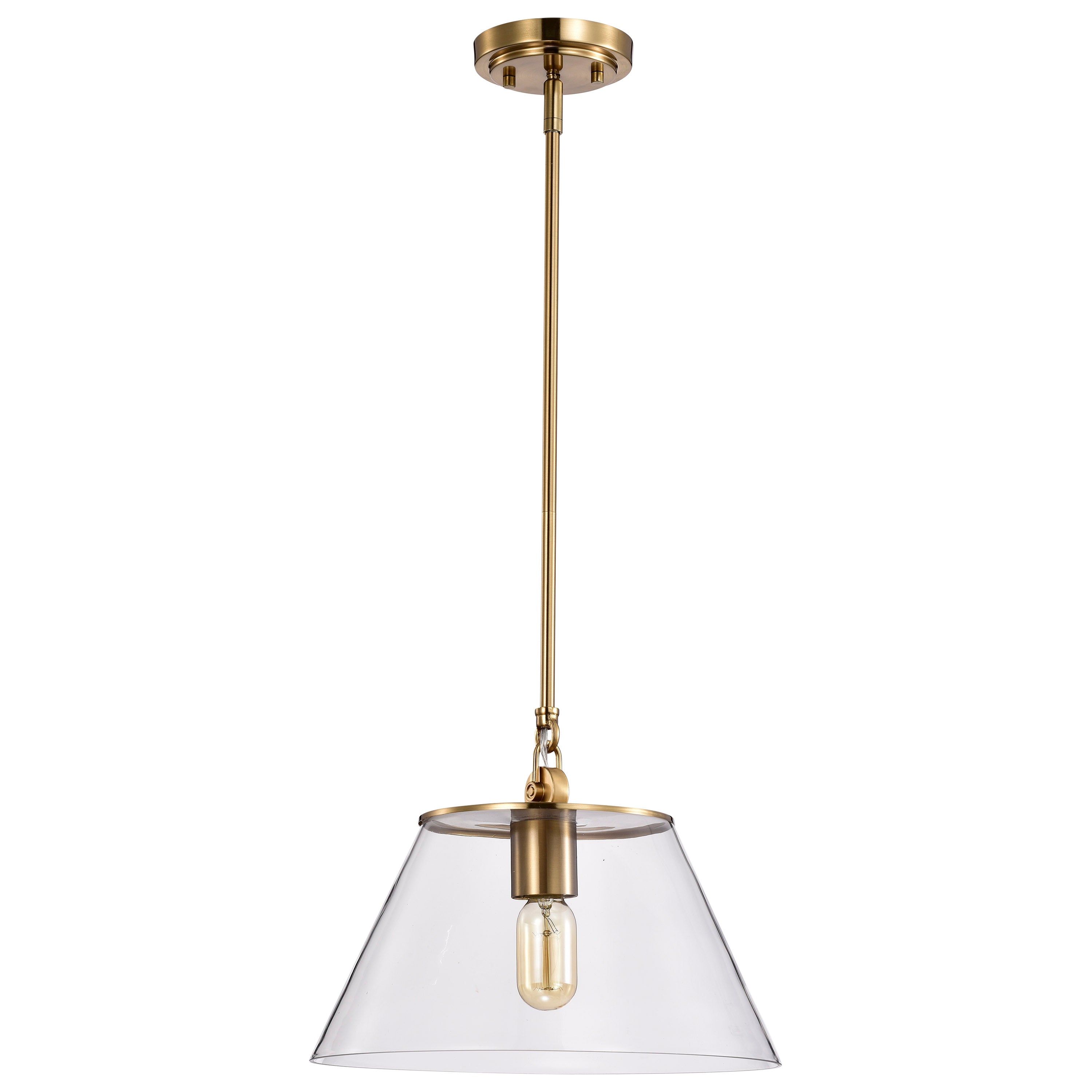 With subtle detailing, the Dover medium pendant is graceful yet unassuming. The simple clear glass shade features trim finished in vintage brass to match the fixture's body. Place a trio of them over the kitchen island for added light or over nightstands in a bedroom as a permanent lighting solution.