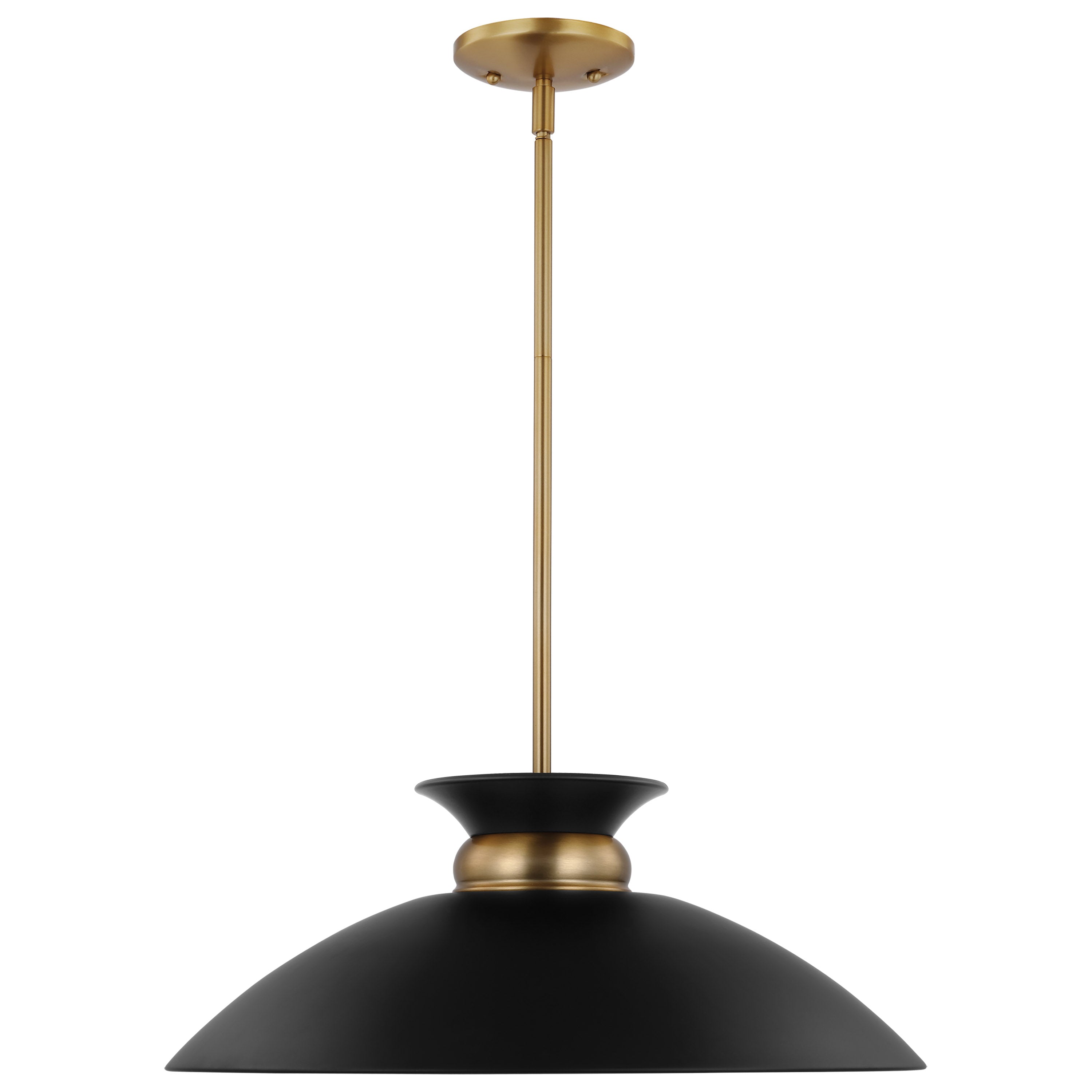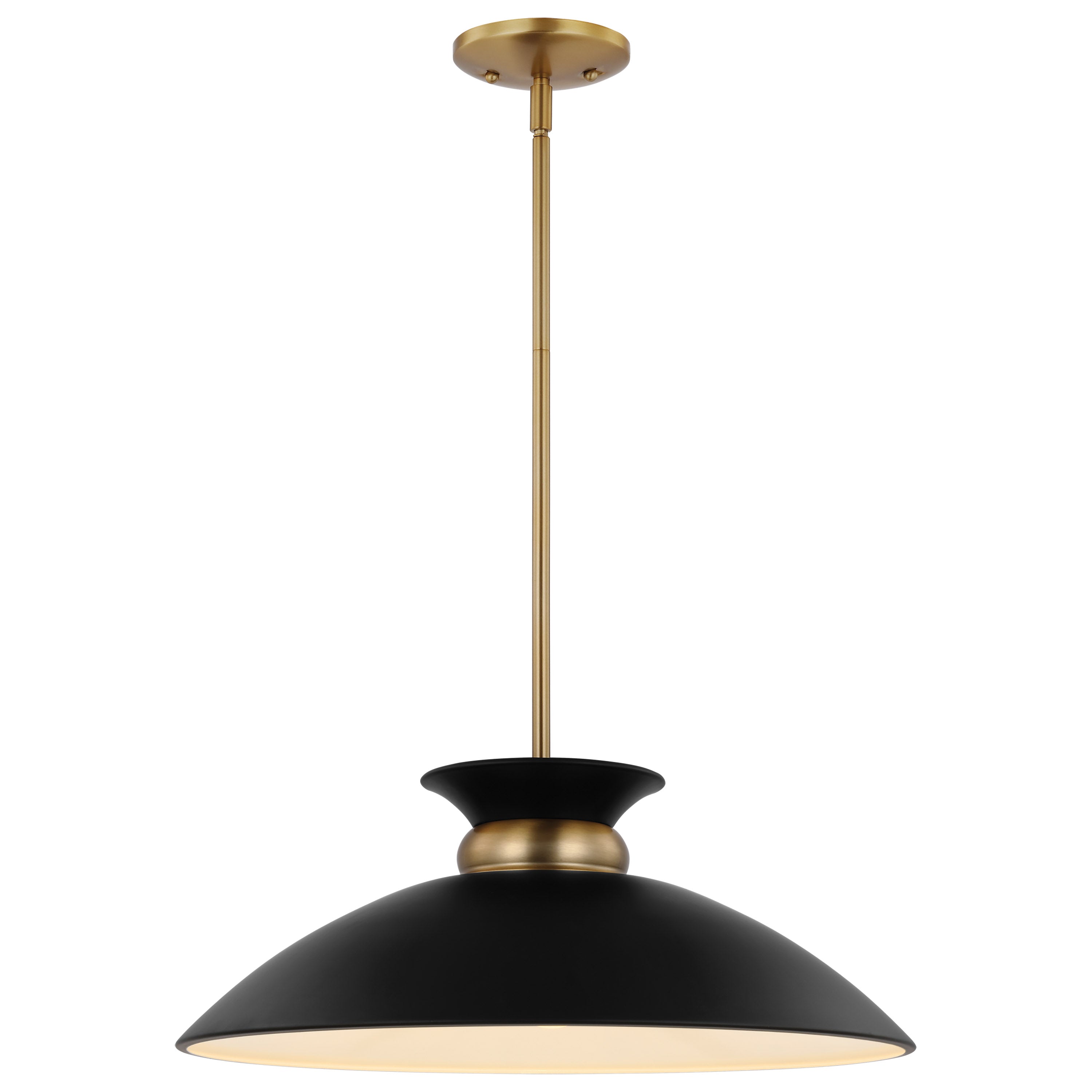 The simplistic design of the Perkins medium pendant is understated, yet refined. The decorative burnished brass band on the shallow-dome metal shade cinches at the top, creating the illusion of a swirling skirt. The white interior of the shade provides maximum light reflection and is complemented with a matte black finish on the exterior. No longer just for the kitchen, this beautiful pendant will give any room in your home a facelift.
