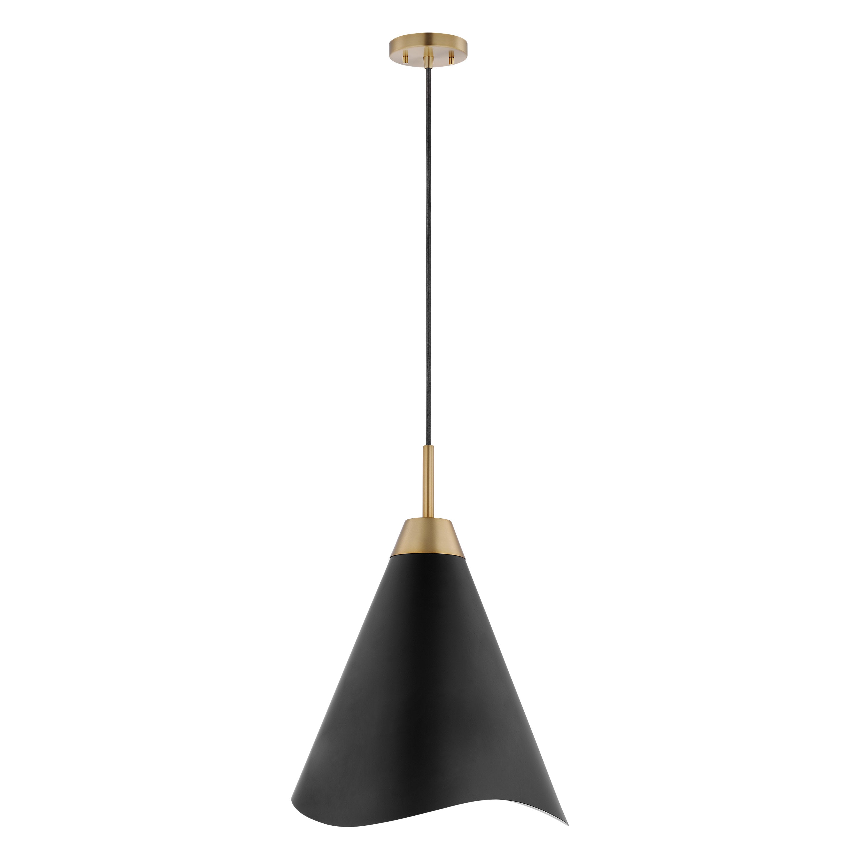 The Tango small pendant proves that simple style does not have to be boring. It features burnished brass accents on the base, cable collar, and canopy, which gives the design some pop. The matte black metal shade is laser-cut on its edge in a subtle wave pattern, adding a soft touch to the style. Ideal for lighting a kitchen island, a corridor or hallway, or the dining room. With Tango, the possibilities are endless.