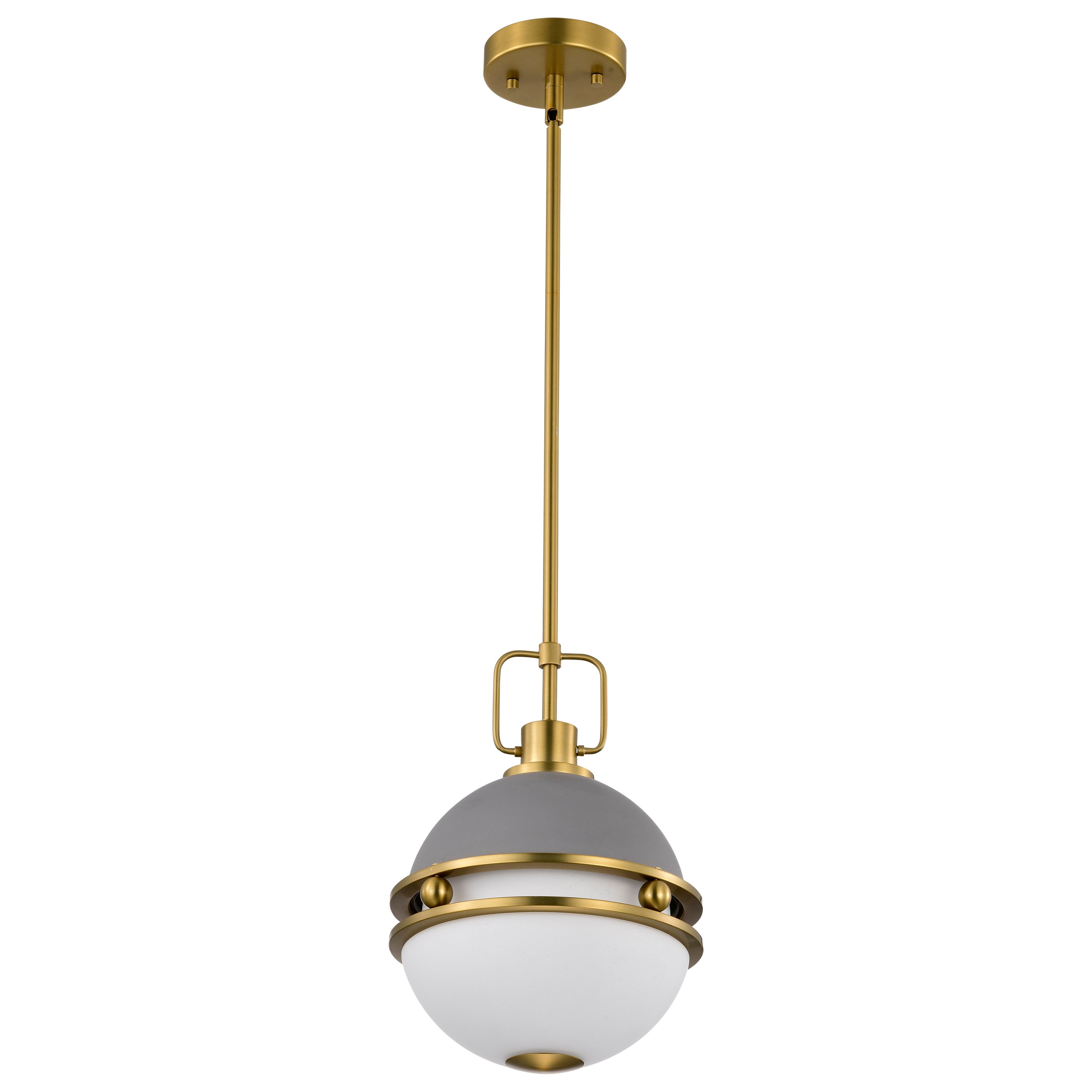Modern illumination with beautiful, subtle details, elevates the Everton's group of pendants style to grand heights. With spherical, opal etched glass softly diffusing the light, creating a warm and inviting glow. Available in a rich brass finish with a soft matte gray, or matte black, creating a wonderful balance of color's to choose from. Your home is a haven and Everton is ideal for today's stylish luminaires.