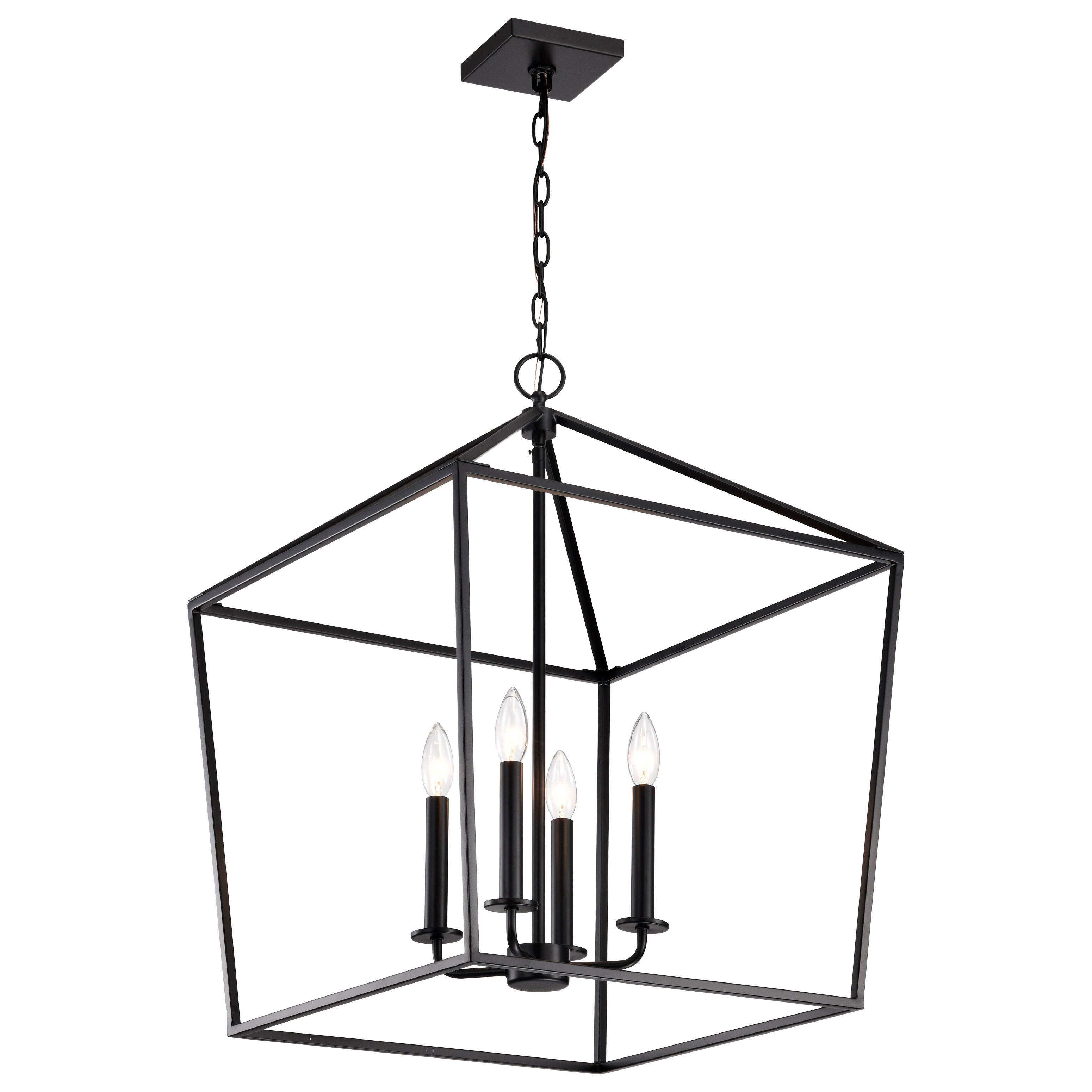 A stylish lighting fixture that combines transitional elements with minimal design, Emma is a knockout. The warmth of the three, lovely finishes to choose from on the simple framework is highlighted by four candelabra bulbs, exuding elegant charm without excessive ornamentation. The fixture is versatility at its finest, either taking center stage as the focal point of a room's design or as a backdrop to suit any décor. Greet your guests to a romantic ambiance in an entry way or illuminate an enchanting evening in a dining room. Choose a small or large size pendant, finished in burnished brass, matte black, or dark bronze. Whichever space you choose, Emma is sure to be stunning.