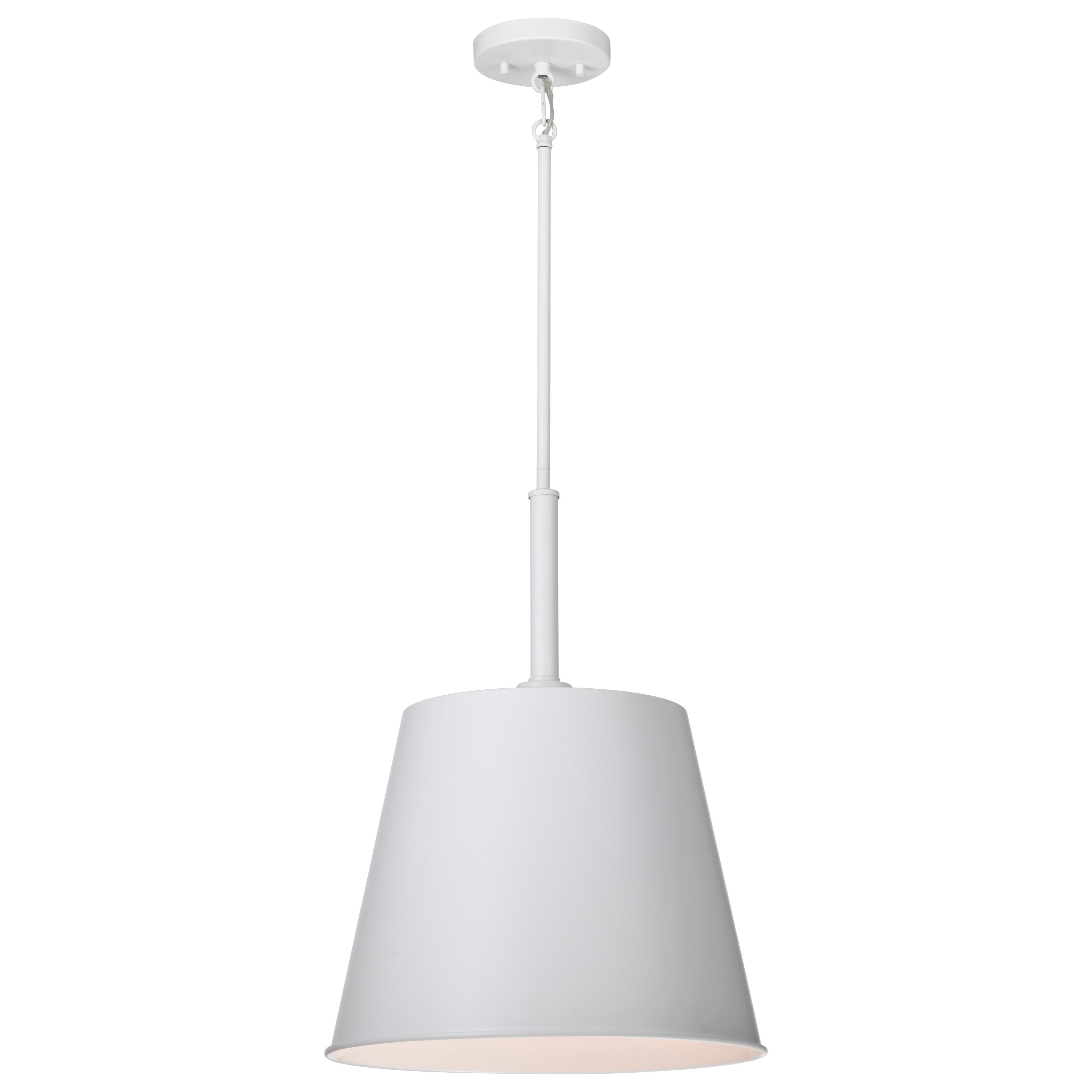 The Alexis pendants showcase a stylish and understated lighting solution for today's home. The finishes are sophisticated and modern on the canopy, rod, and matching metal shade, unifying the overall artistic vision of the design. Bring a tired entryway into the 21st century, create a row of unique lighting in an office or work study, or provide additional task lighting over a kitchen island. The focus on essential elements like style, design, and finish, all come together to create a sleek and uncluttered appearance. Choose from two available sizes in two beautiful finishes, burnished brass with hints of gold, or matte white, Alexis beautifully integrates into various decors and lighting solutions.