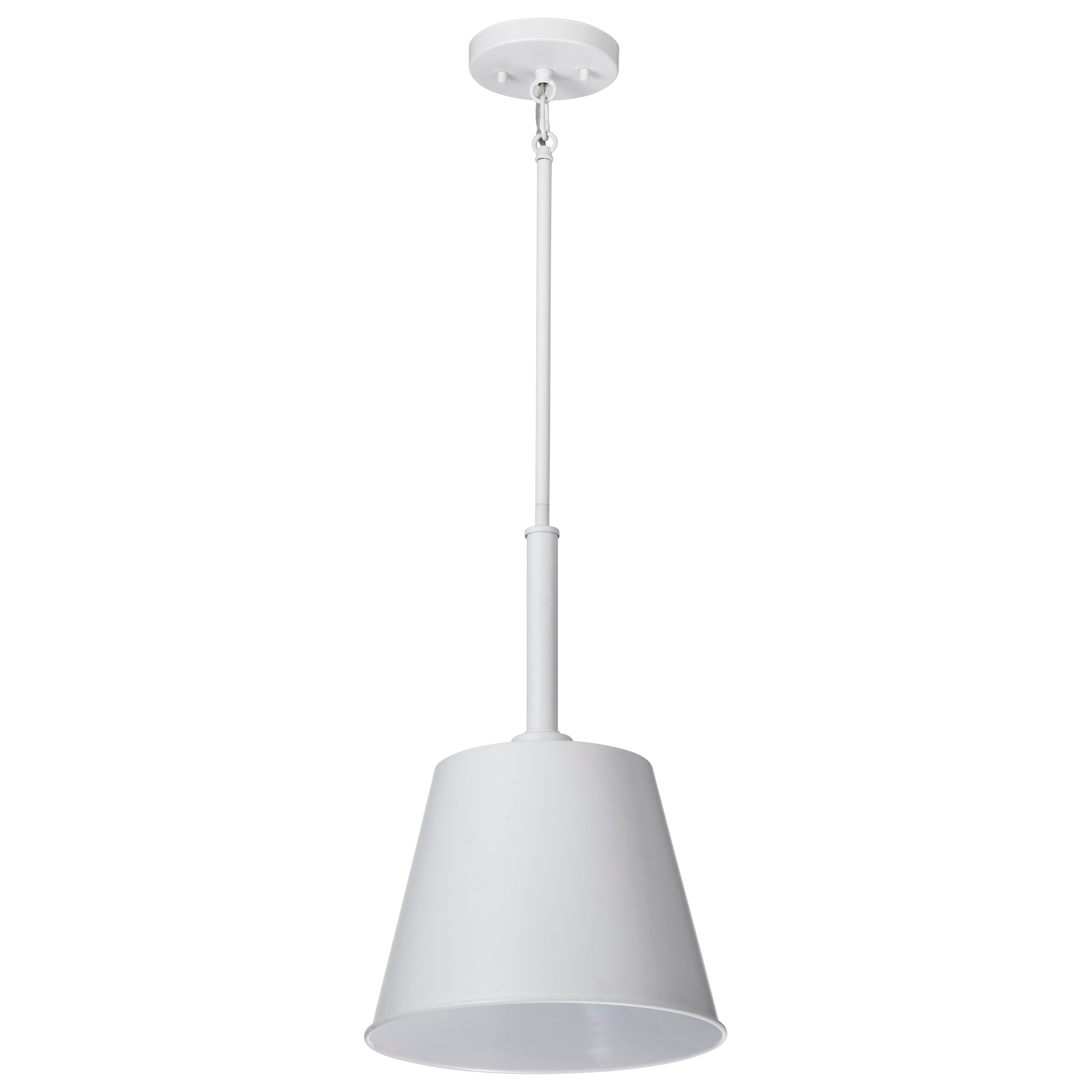 The Alexis pendants showcase a stylish and understated lighting solution for today's home. The finishes are sophisticated and modern on the canopy, rod, and matching metal shade, unifying the overall artistic vision of the design. Bring a tired entryway into the 21st century, create a row of unique lighting in an office or work study, or provide additional task lighting over a kitchen island. The focus on essential elements like style, design, and finish, all come together to create a sleek and uncluttered appearance. Choose from two available sizes in two beautiful finishes, burnished brass with hints of gold, or matte white, Alexis beautifully integrates into various decors and lighting solutions.