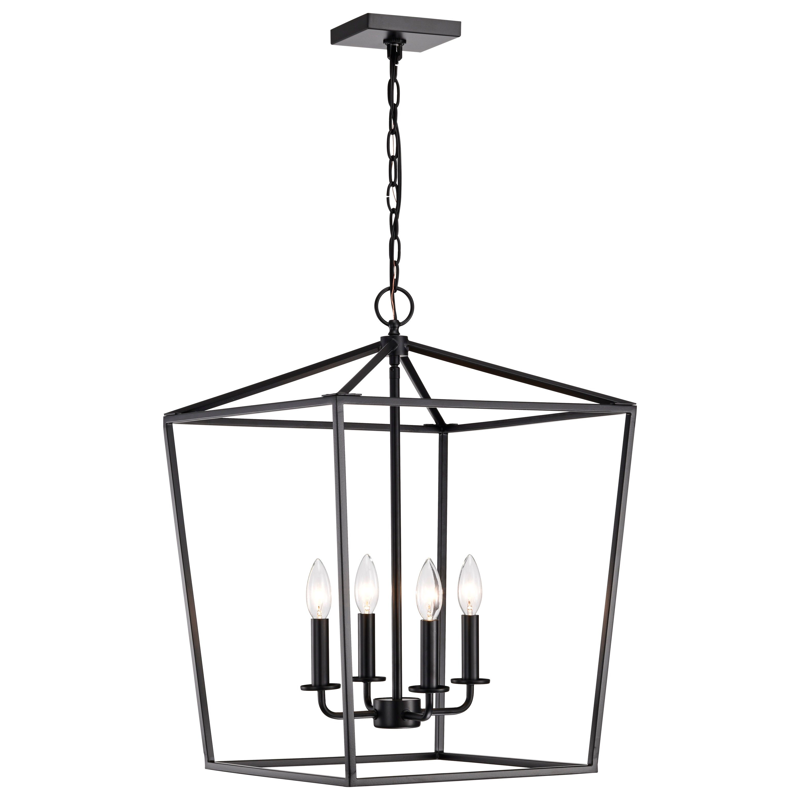A stylish lighting fixture that combines transitional elements with minimal design, Emma is a knockout. The warmth of the three, lovely finishes to choose from on the simple framework is highlighted by four candelabra bulbs, exuding elegant charm without excessive ornamentation. The fixture is versatility at its finest, either taking center stage as the focal point of a room's design or as a backdrop to suit any décor. Greet your guests to a romantic ambiance in an entry way or illuminate an enchanting evening in a dining room. Choose a small or large size pendant, finished in burnished brass, matte black, or dark bronze. Whichever space you choose, Emma is sure to be stunning.