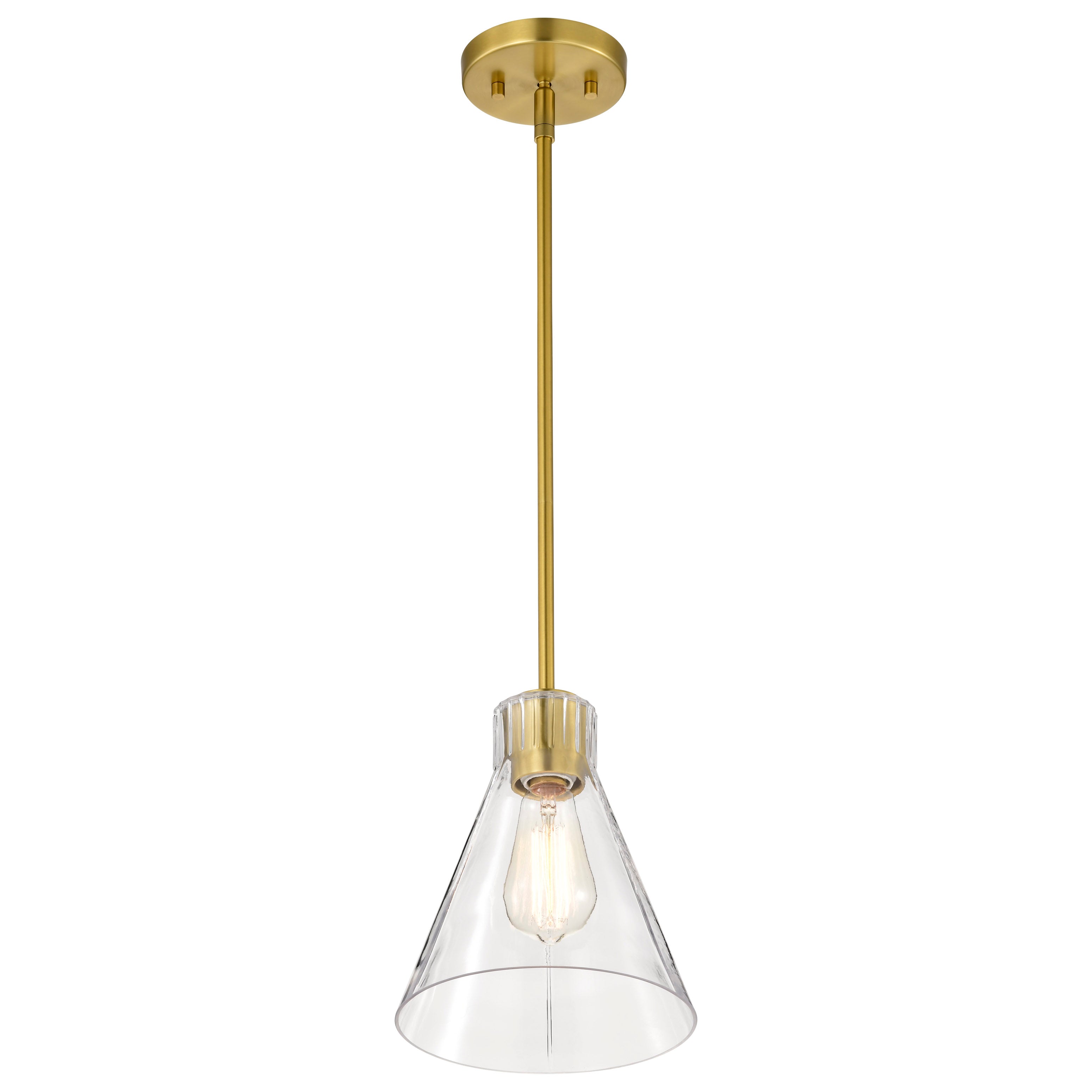 Step back in style and revel in the charm of retro sophistication with the Gianna Collection, a tribute to the bold aesthetics of the seventies. Effortlessly blending style with vintage allure, this collection redefines transitional design. Featuring clear glass shades adorned with intricate ribbed collars, the Gianna Collection is available in brushed nickel or vintage brass finishes, offering the perfect touch of metal and glass. Ideal for those who love a modern twist on retro design, Gianna brings an unforgettable blend of nostalgia and contemporary flair to any space.