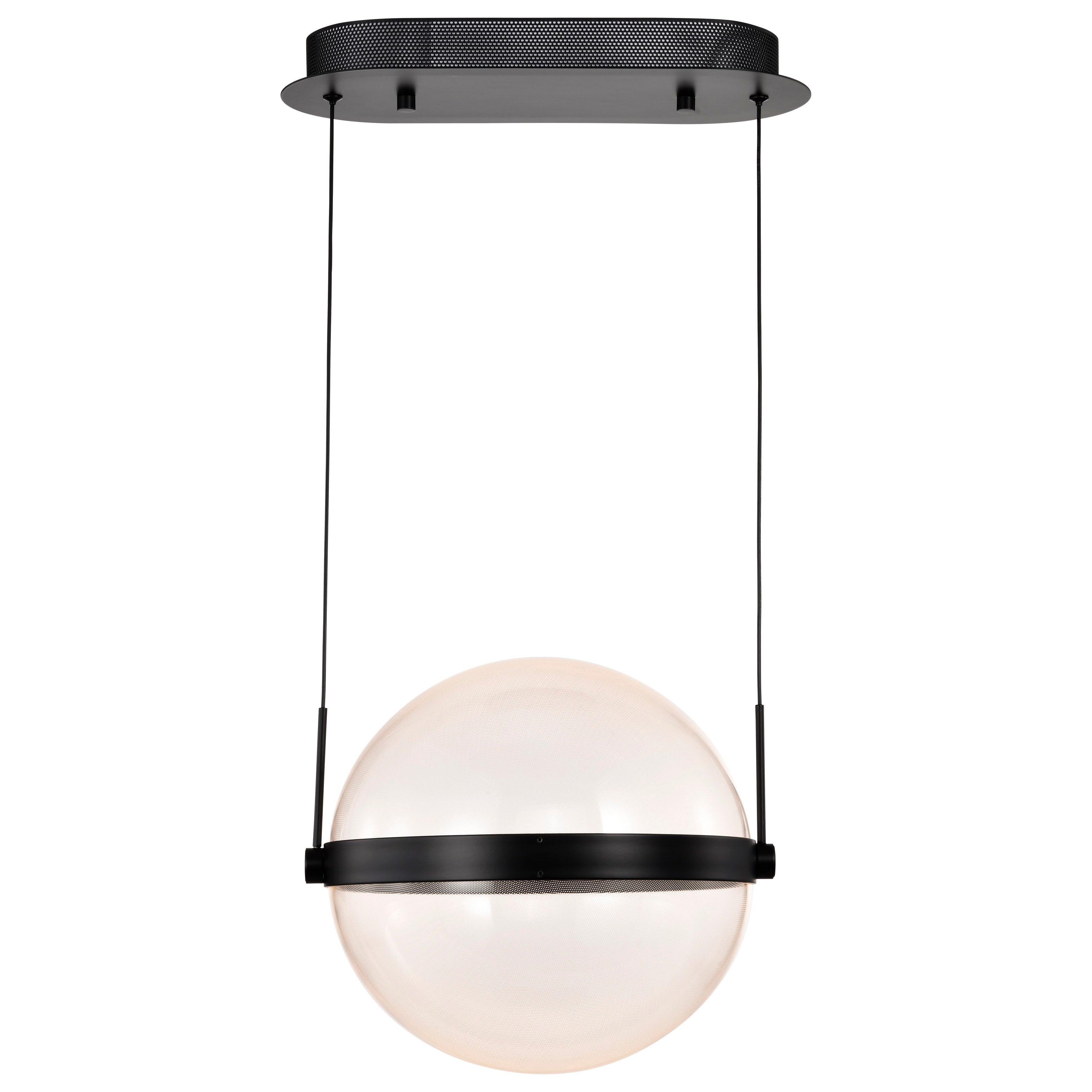 Designed with modern living in mind, the Arvada Collection seamlessly integrates cutting-edge technology with timeless design. The sleek, cable-hung exterior is a canvas of illumination and intricate patterns, with a matte black finish and a perfect sphere of silk screened acrylic housing the light source. The integrated LED lighting not only enhances the visual appeal but also ensures energy efficiency, providing an eco-friendly solution that aligns with your commitment to a sustainable lifestyle. These pendants are the epitome of versatility, from dining rooms to kitchens, and more, the Arvada pendants are designed to captivate, setting the state for ambiance and unforgettable moments.