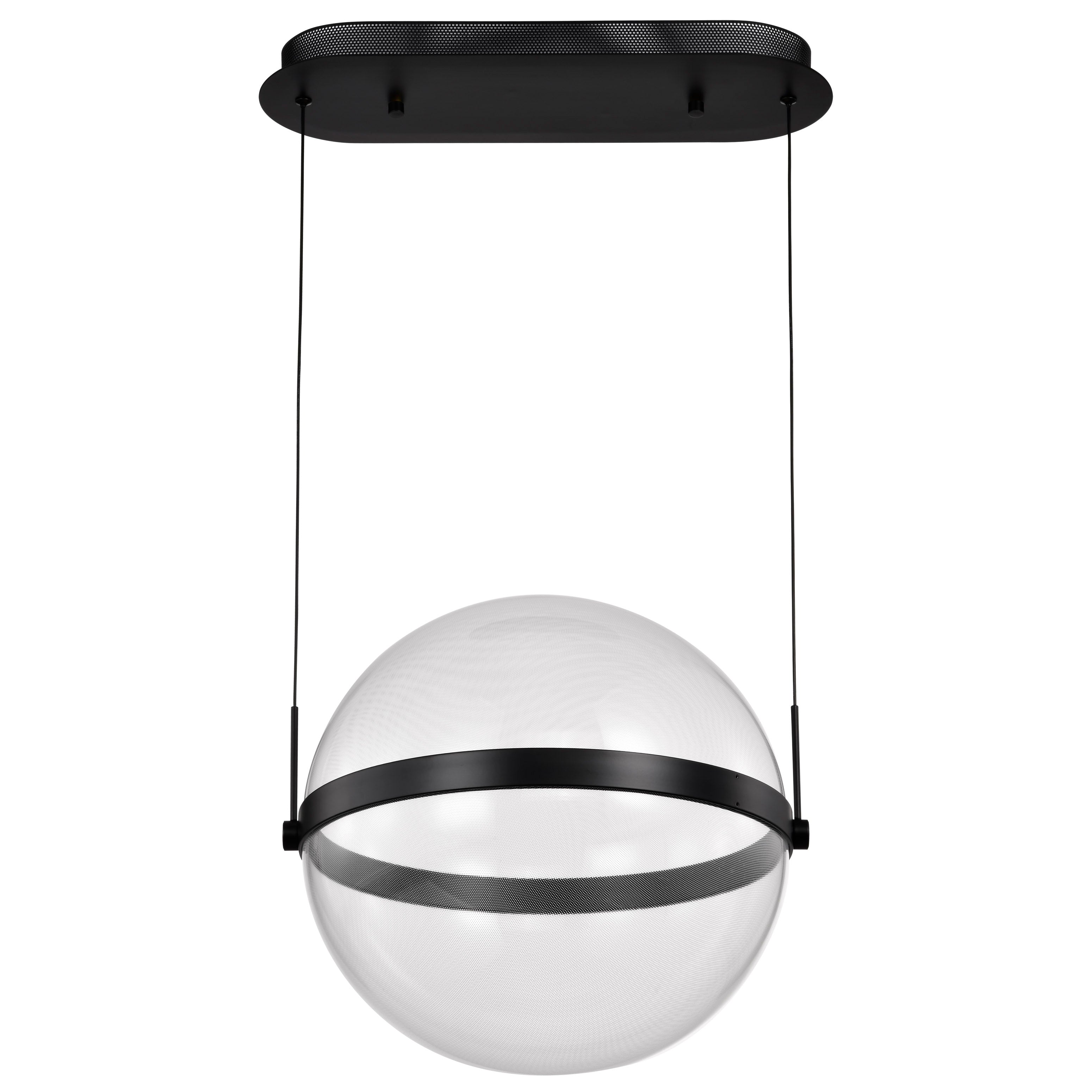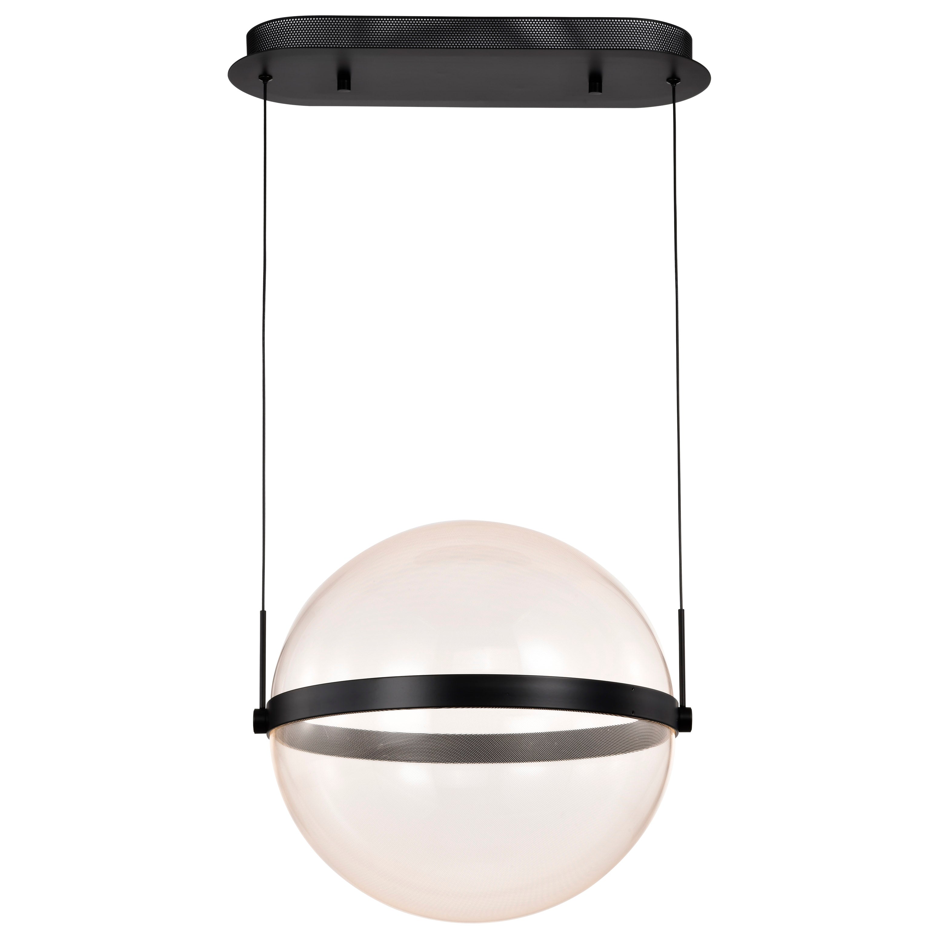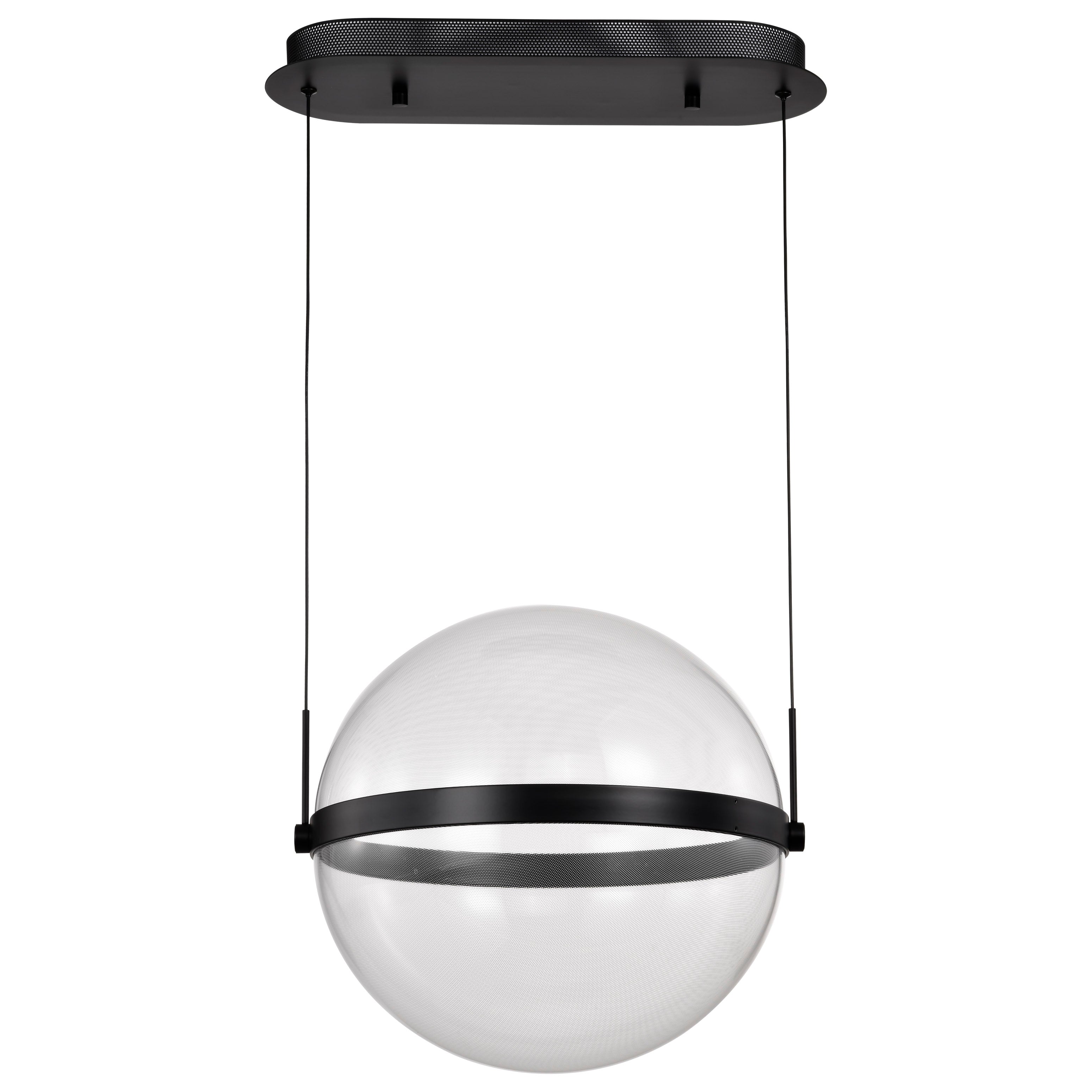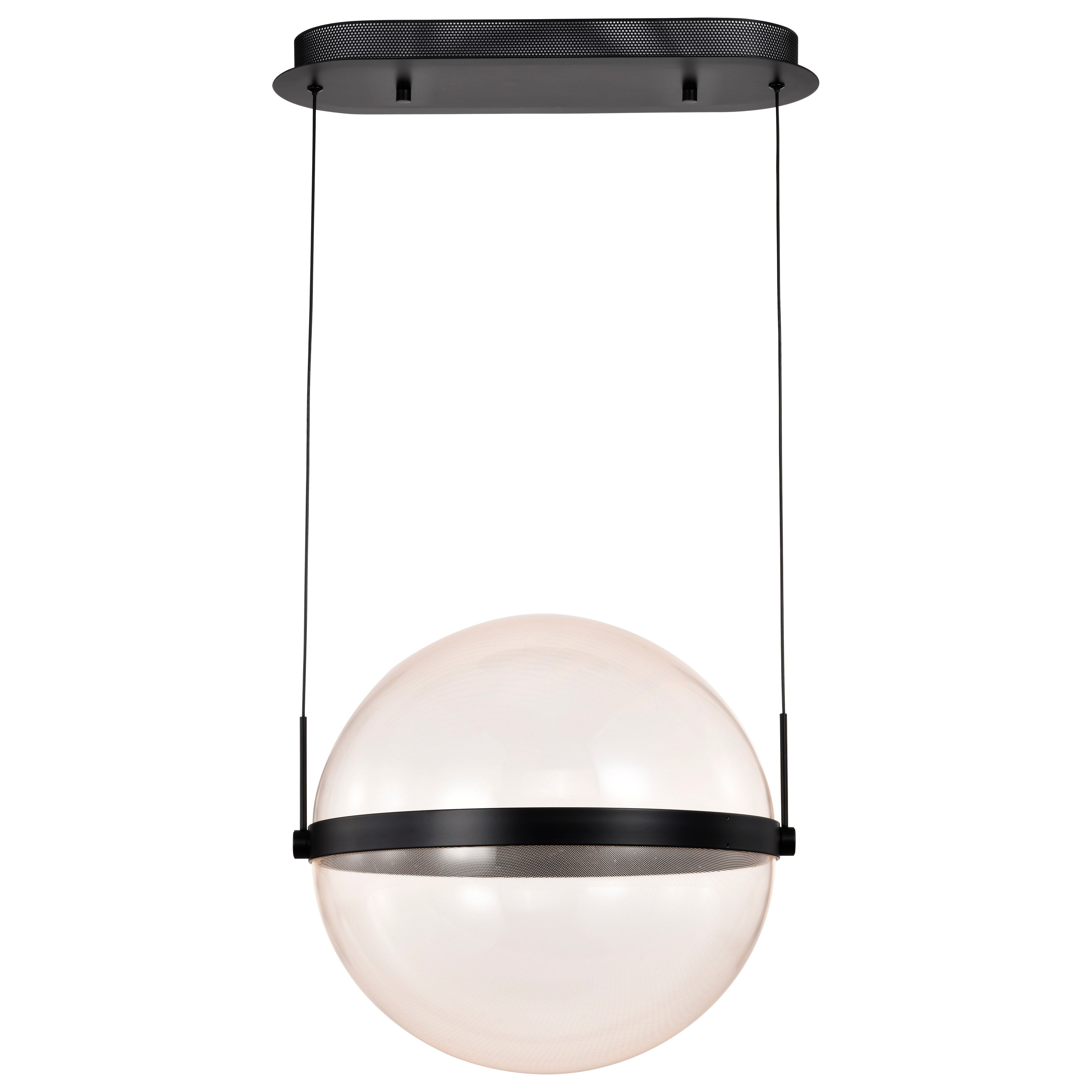 Designed with modern living in mind, the Arvada Collection seamlessly integrates cutting-edge technology with timeless design. The sleek, cable-hung exterior is a canvas of illumination and intricate patterns, with a matte black finish and a perfect sphere of silk screened acrylic housing the light source. The integrated LED lighting not only enhances the visual appeal but also ensures energy efficiency, providing an eco-friendly solution that aligns with your commitment to a sustainable lifestyle. These pendants are the epitome of versatility, from dining rooms to kitchens, and more, the Arvada pendants are designed to captivate, setting the state for ambiance and unforgettable moments.