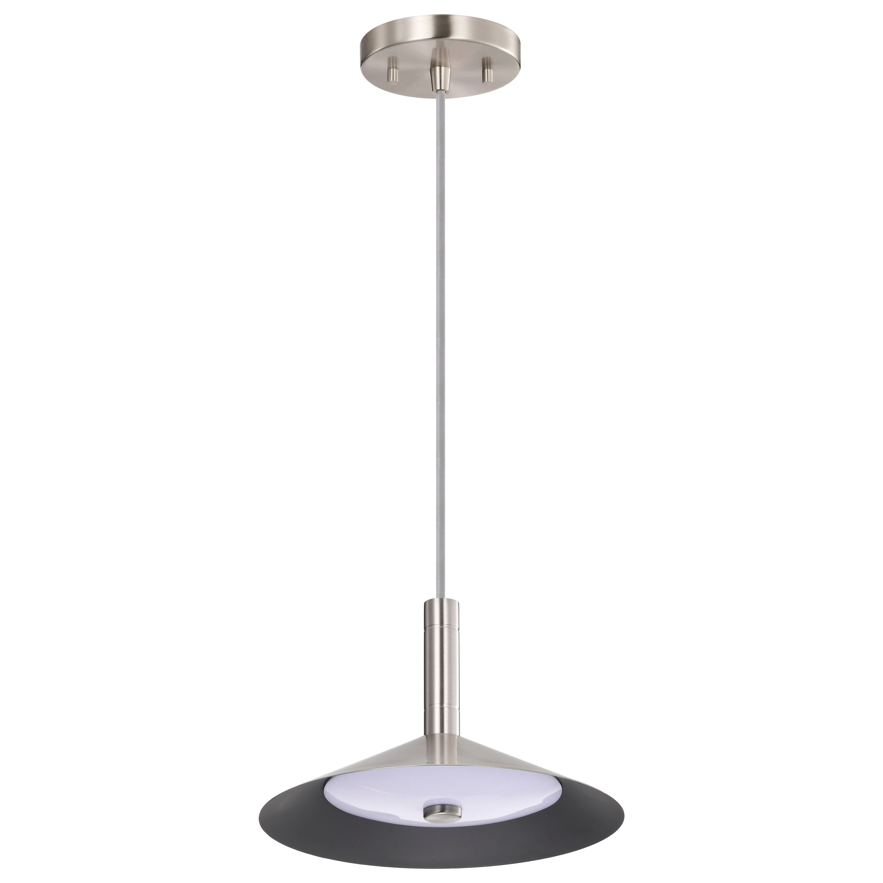 The Corrine Collection effortlessly marries style and substance, making it the epitome of understated modern design. Designed to captivate, the integrated LED features three CCT selectable options from warm white to natural light, softly diffusing the light with an acrylic diffuser and a dark gray reflector lining the steel shade. Finished in three colors, velvety matte black, chic brushed nickel, or rich burnished brass, with a contrasting braided rayon cord cove, continuing the polished aesthetic, sleek lines and minimalist silhouette making it a versatile addition to any space. Seamlessly blending into various interior styles, Corrine adorns your home as a statement piece that complements your discerning taste.