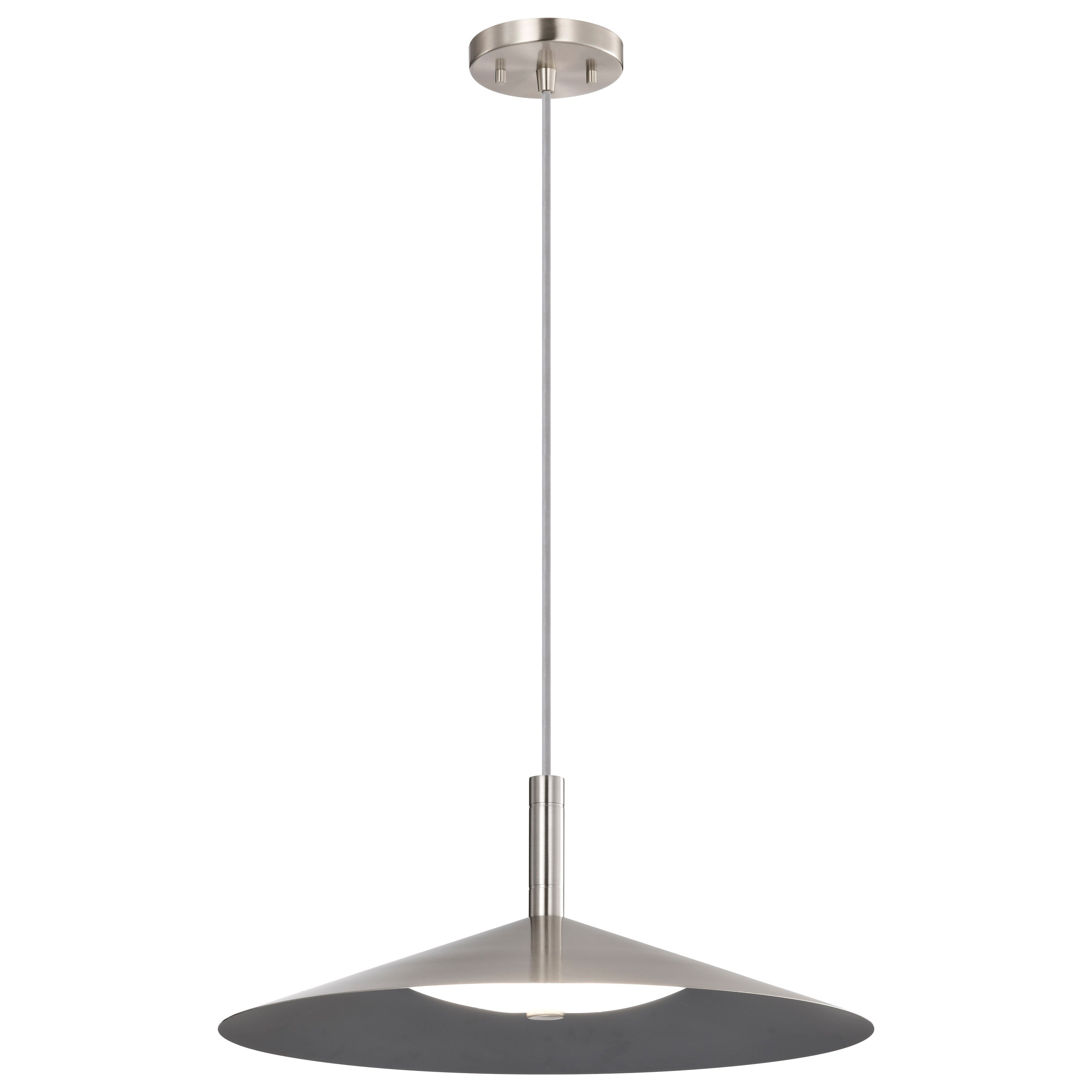 The Corrine Collection effortlessly marries style and substance, making it the epitome of understated modern design. Designed to captivate, the integrated LED features three CCT selectable options from warm white to natural light, softly diffusing the light with an acrylic diffuser and a dark gray reflector lining the steel shade. Finished in three colors, velvety matte black, chic brushed nickel, or rich burnished brass, with a contrasting braided rayon cord cove, continuing the polished aesthetic, sleek lines and minimalist silhouette making it a versatile addition to any space. Seamlessly blending into various interior styles, Corrine adorns your home as a statement piece that complements your discerning taste.