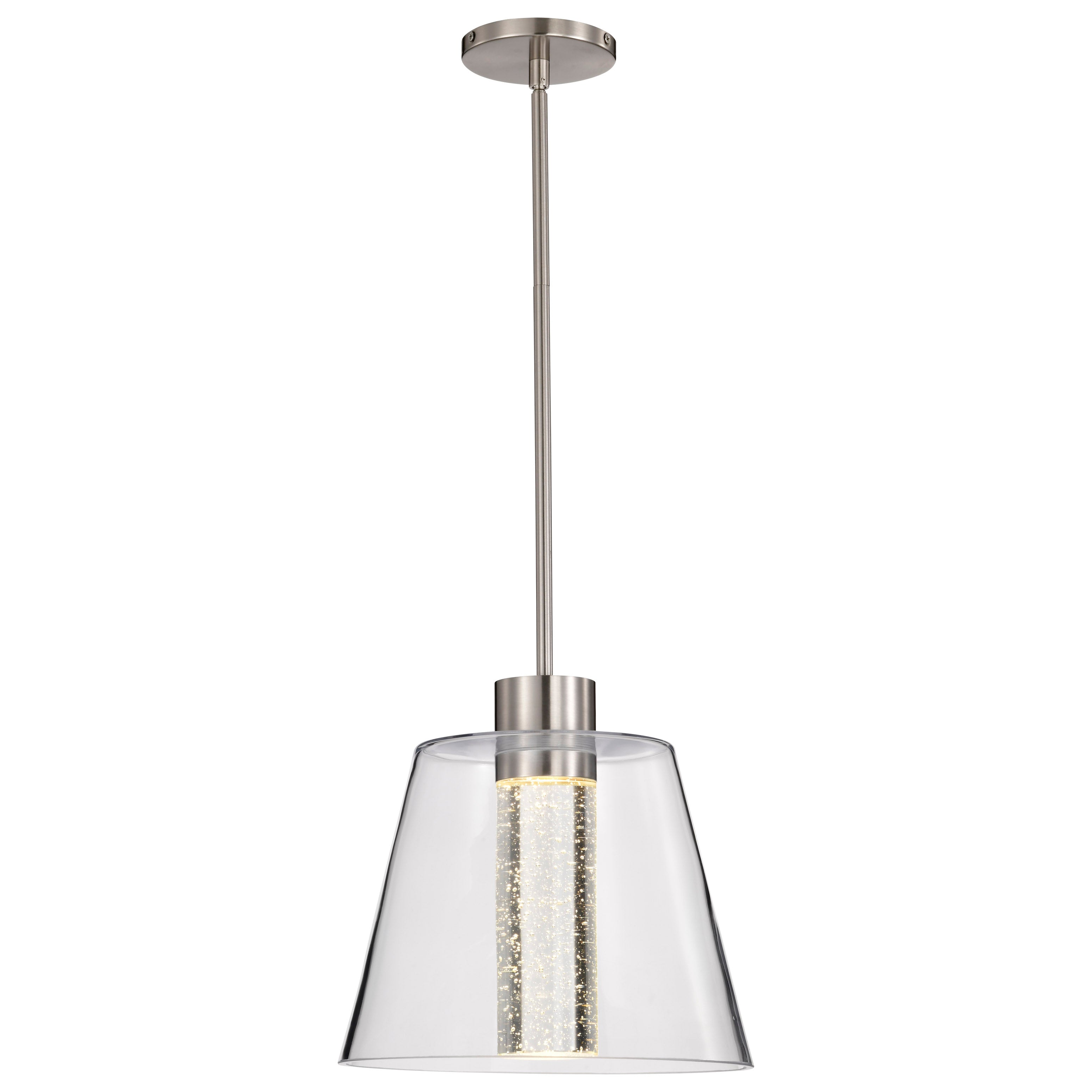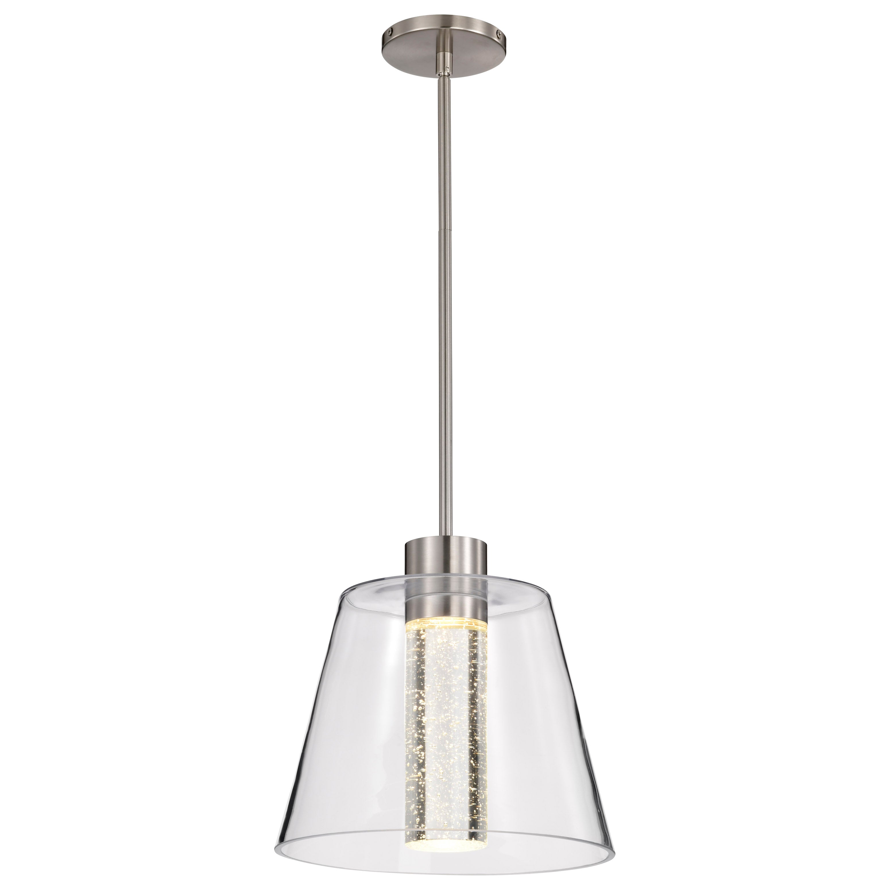 A fusion of contemporary style and classic allure, the exquisite Aura Collection is a suite of elegantly crafted pendants for today's style. A dance of light awaits with integrated LED shining through a K9 bubble crystal column, inviting you to enjoy its warmth and glow through the clear glass shade. Featuring the latest in LED technology, these fixtures come in 3000K soft white light. Available in sleek matte black, rich brushed brass, or lustrous brushed nickel, effortlessly complimenting the clear glass shade, working well with existing finishes, and decor. Picture your space transformed with beautiful simplicity, the latest technology, and design that is a celebration of here and now with Aura.