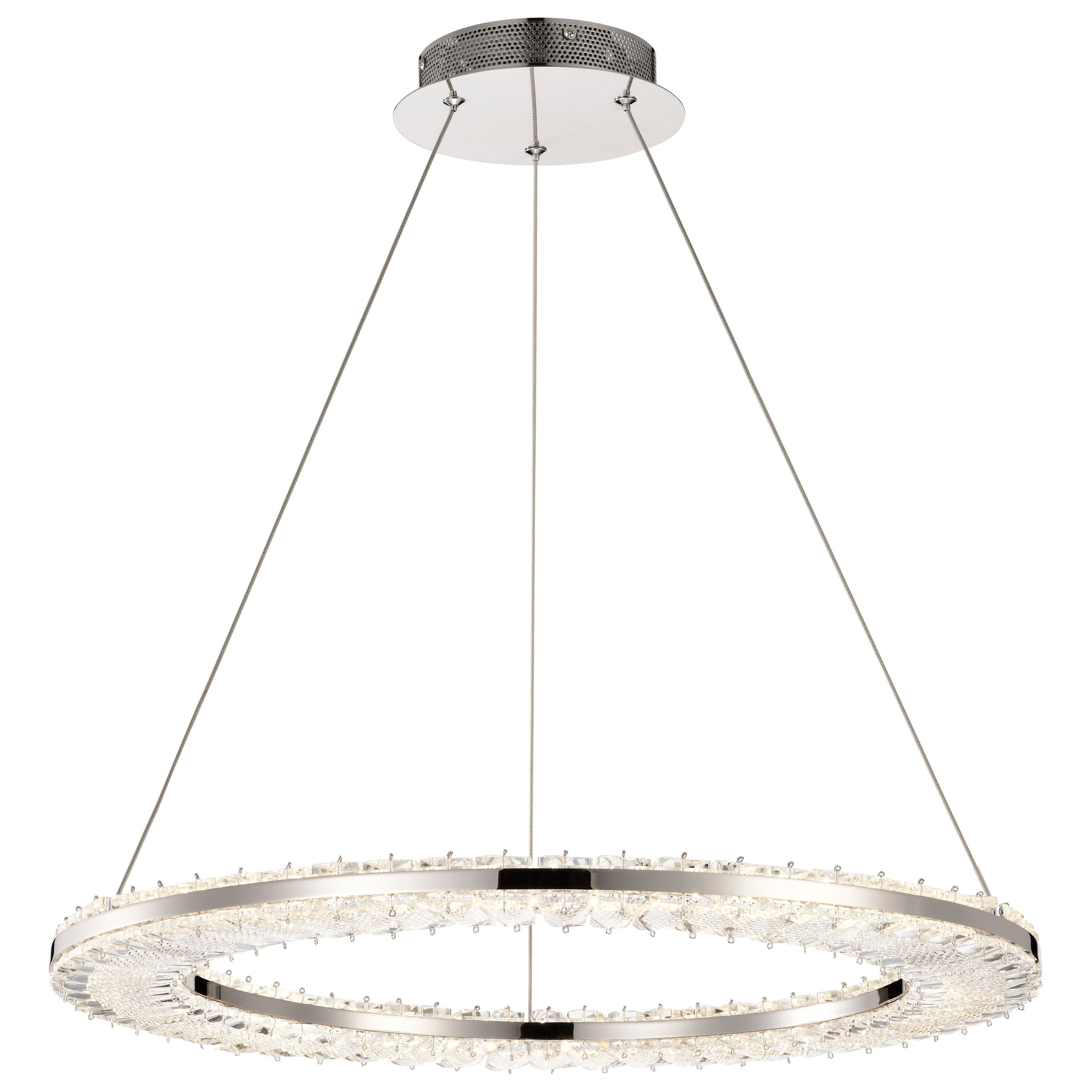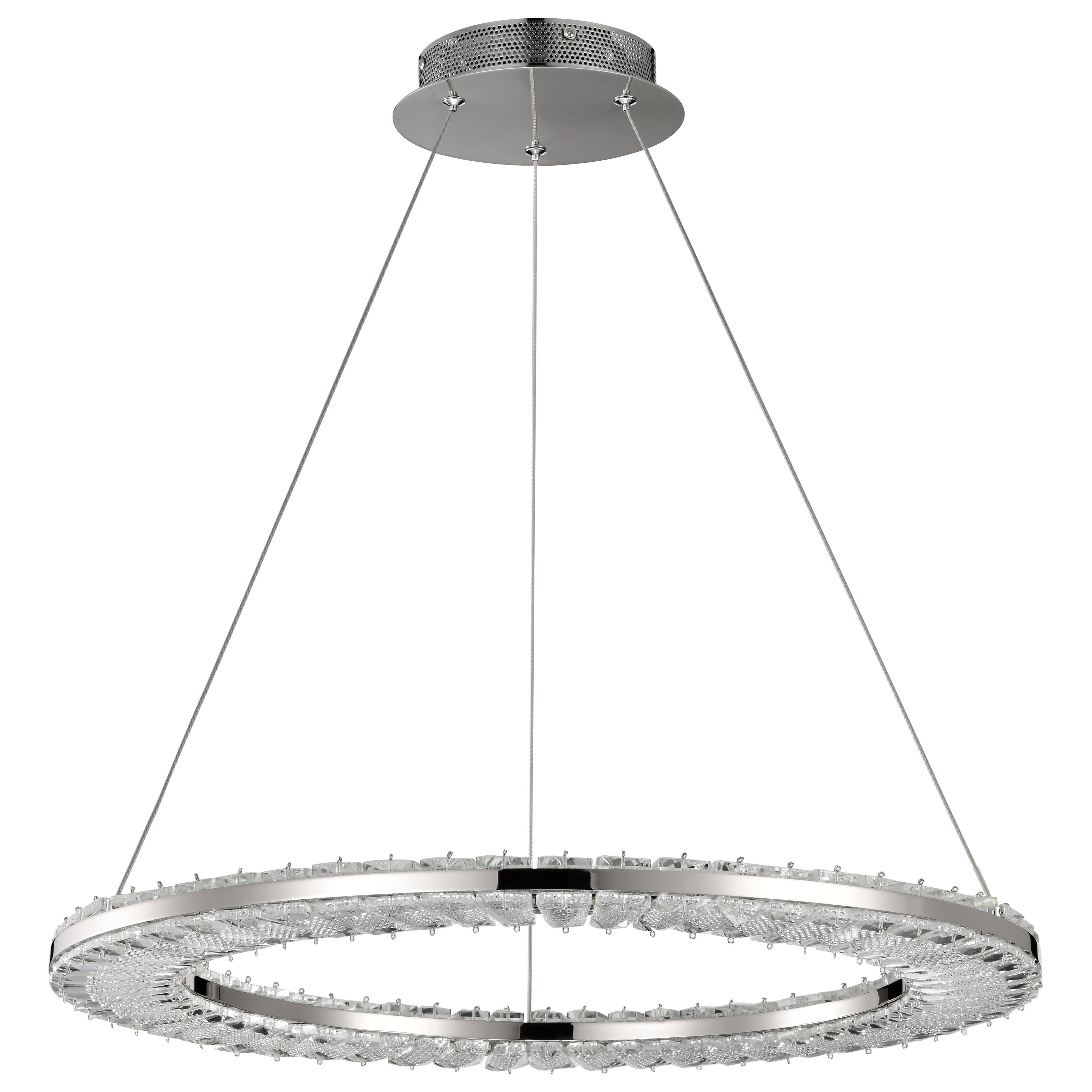 Encounter the Nova Collection, where contemporary crystal design meets classic elegance. Crafted with luxurious K9 crystal, each piece shines with exquisite clarity, casting a radiant glow throughout your space. Finished in polished nickel, the collection's sleek lines and sparkling accents create a perfect harmony of modern refinement and beauty. An ideal choice for those who seek a sophisticated statement piece that illuminates any room with style and radiance.