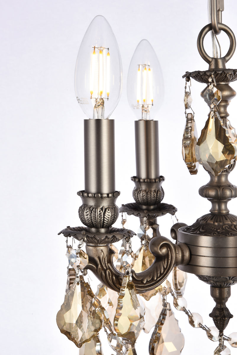 Lillie 4 light Pewter Pendant Golden Teak (Smoky) Royal Cut Crystal
