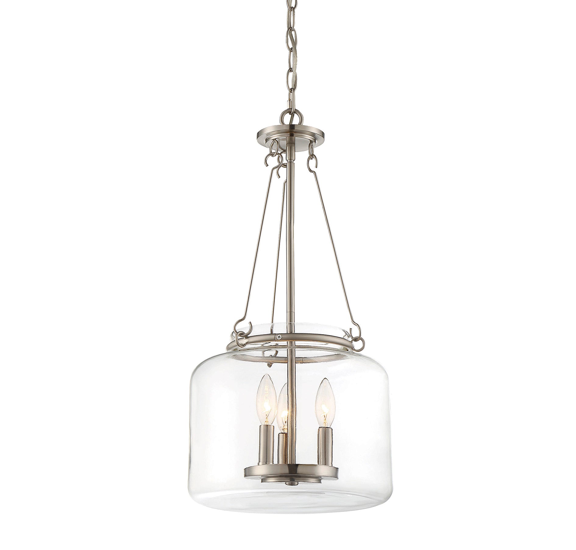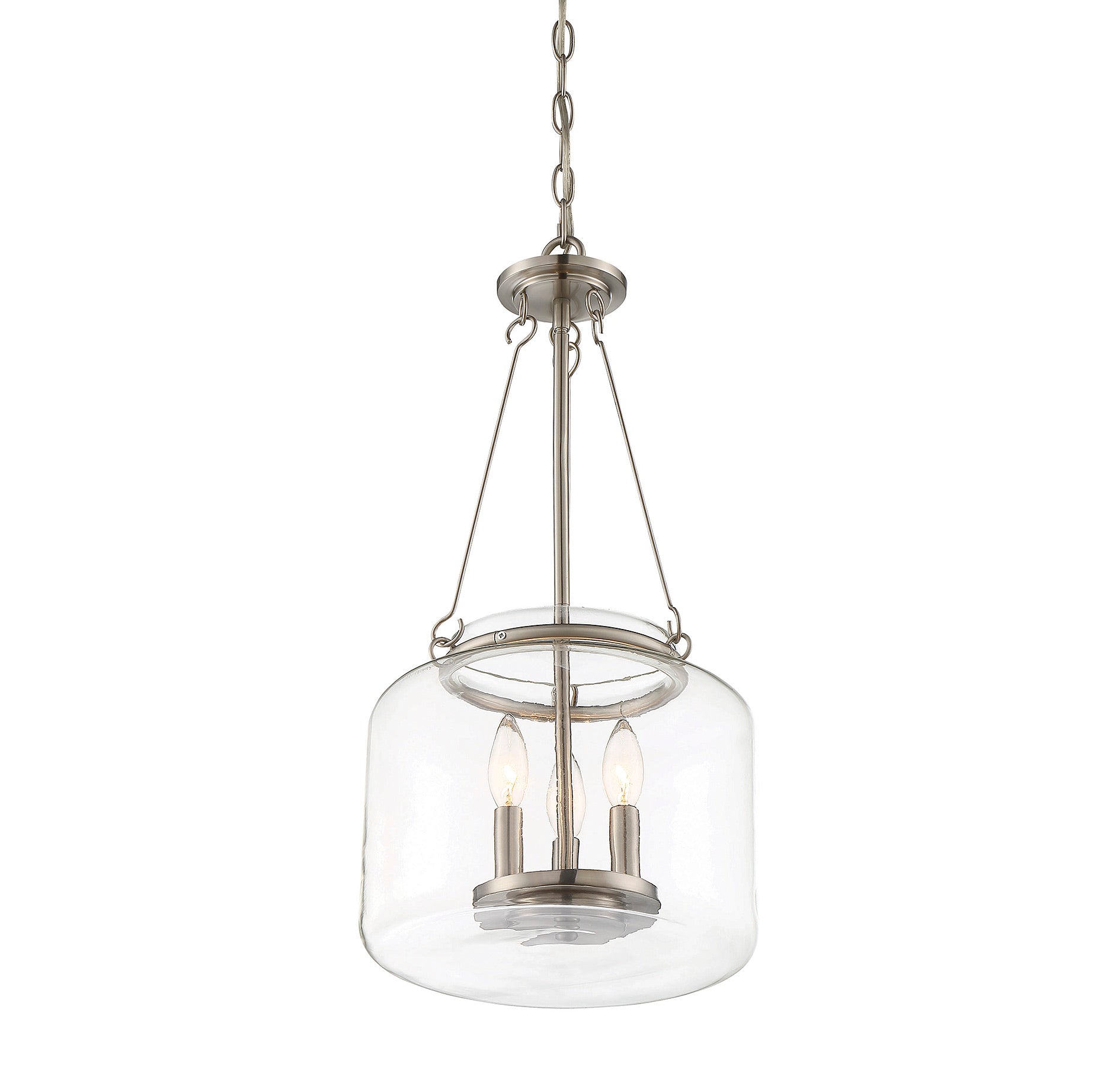 The Akron 3-light pendant from Savoy House proves that a simple style can be stunning! Its square clear glass shade protects the light sources within and is accentuated by thoughtfully-detailed hardware. Finished in sleek satin nickel. Pendants are very versatile and can be used in many different indoor spaces, including kitchens, foyers, offices, great rooms, bedrooms and even bathrooms. Bulbs not included. Try using stylized bulbs like Edison or tubular bulbs for a different look! The satin nickel finish can be matched with nickel hardware or mixed with hardware in other finishes. Akron brings a touch of vintage inspiration to any style of room, especially classic, traditional and transitional. When you choose a Savoy House lighting fixture, you can be certain you've selected a piece that will withstand the test of time.