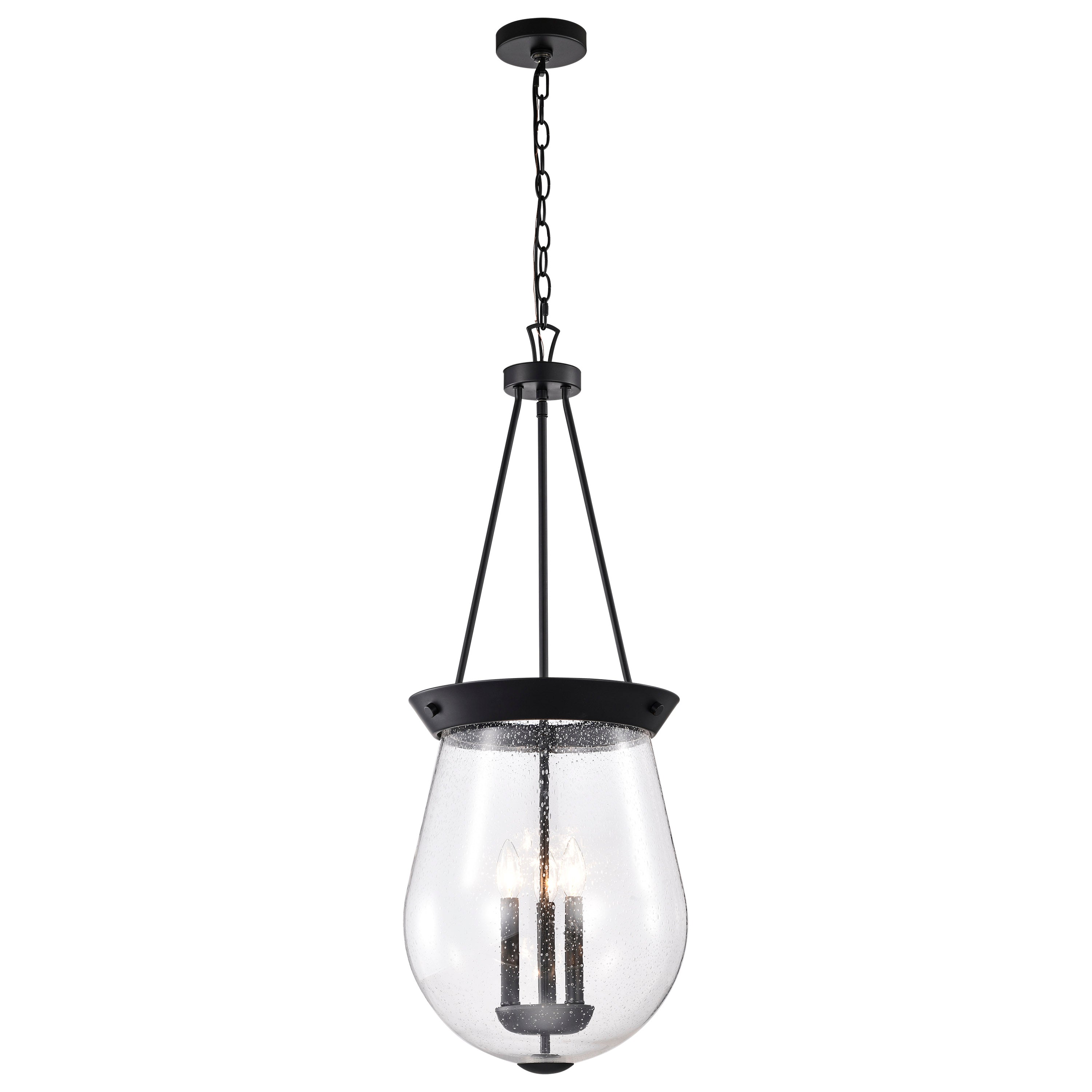Boliver 3 Light Pendant; 11 Inches; Matte Black Finish; Clear Seeded Glass