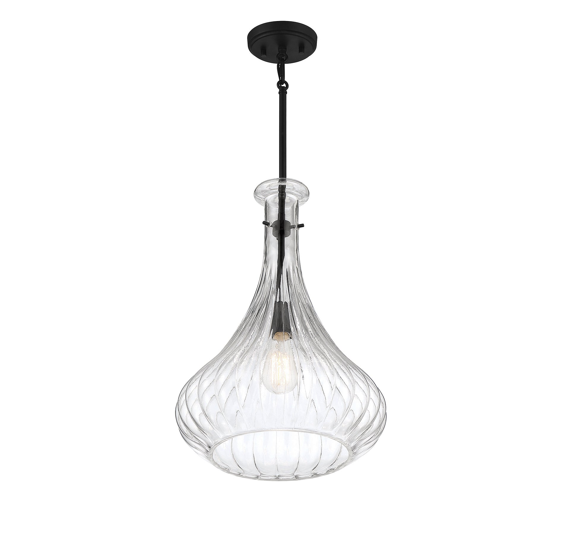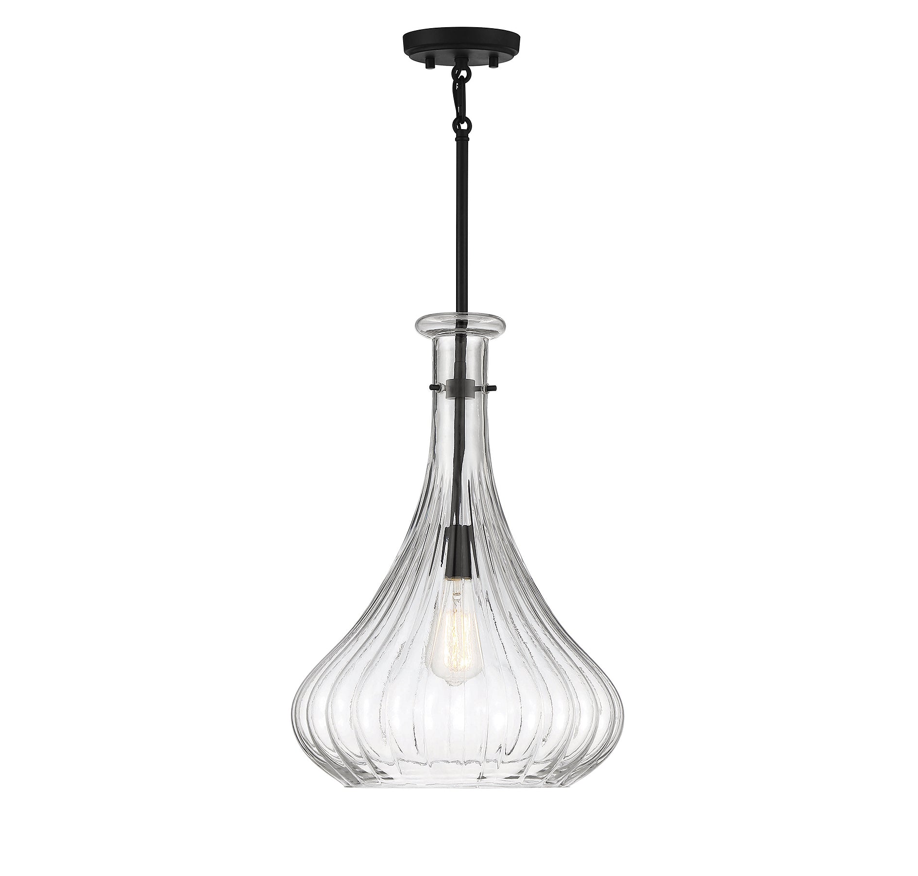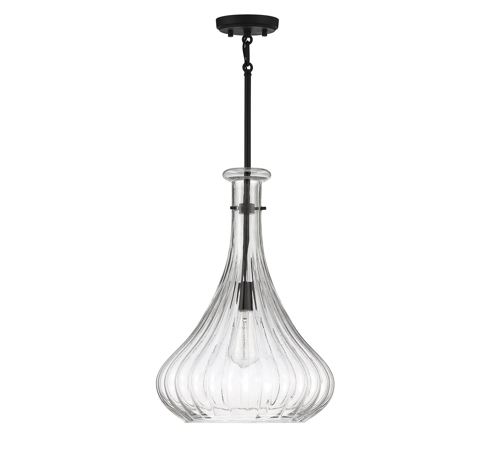 The Bristo collection offers transparent beauty with a fluted shape in clear blown glass and dramatic matte black accents, providing illumination without detracting from other design elements in the room. This one-light pendant has an adjustable height from 26" to 72" and provides illumination from one 60-watt standard size bulb.