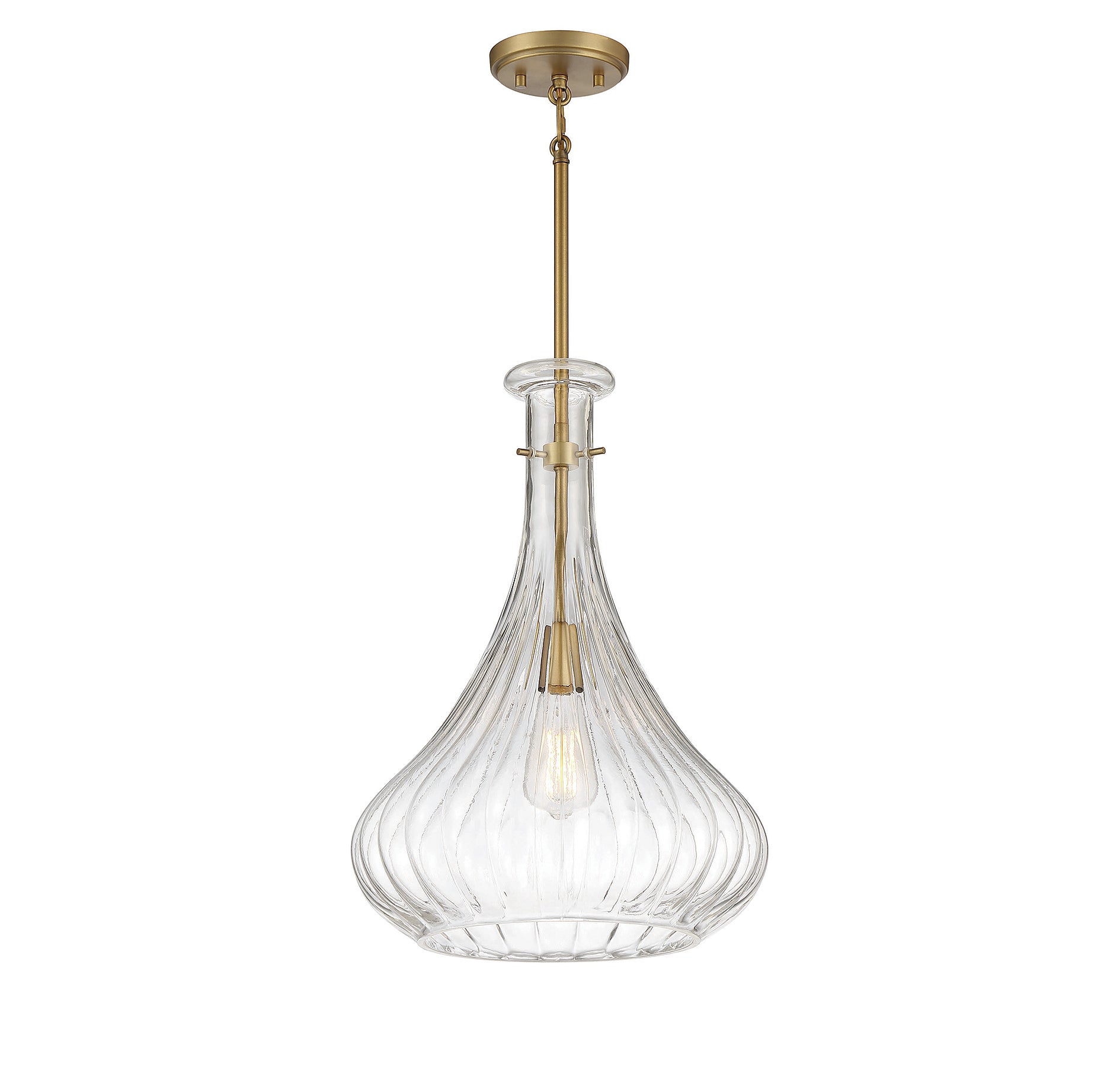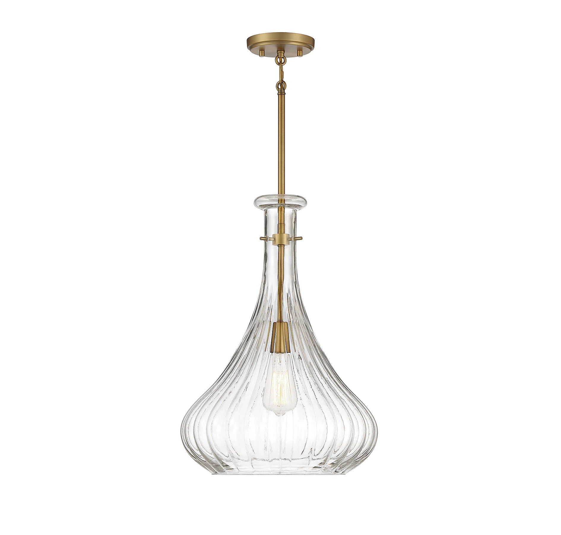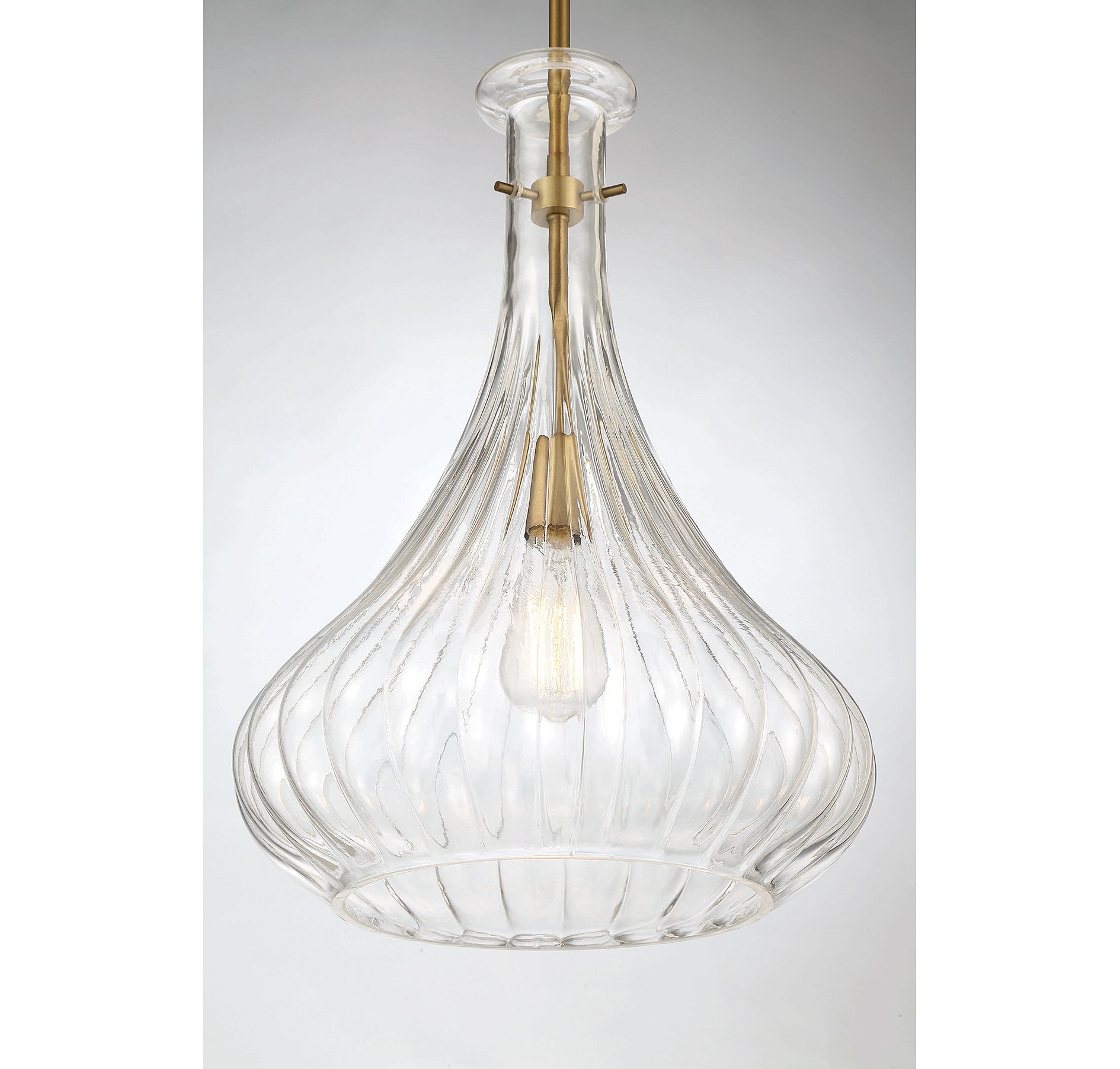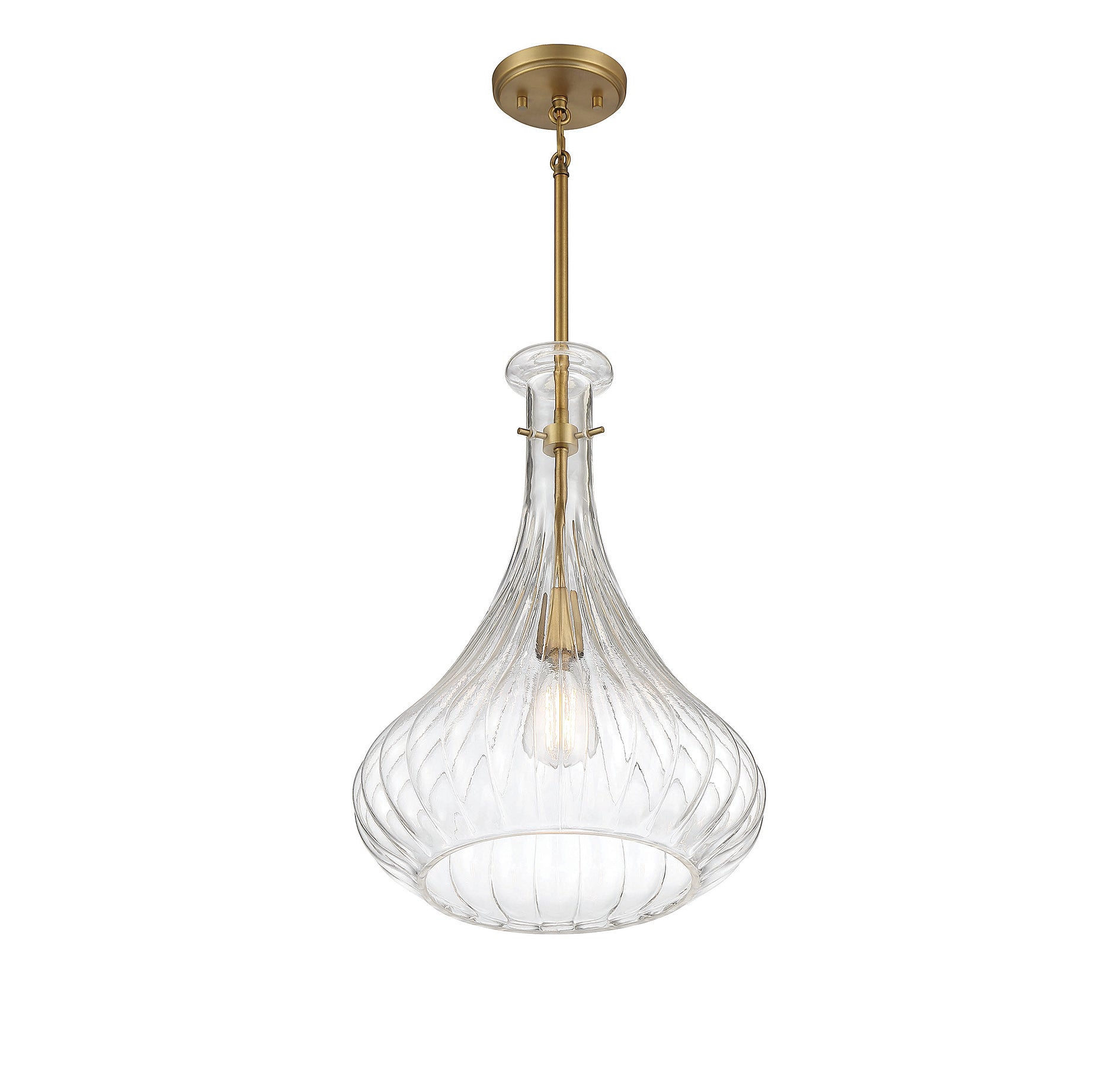 The Bristo collection offers transparent beauty with a fluted shape in clear blown glass and warm brass accents, providing illumination without detracting from other design elements in the room. This one-light pendant has an adjustable height from 26" to 72" and provides illumination from one 60-watt standard size bulb.