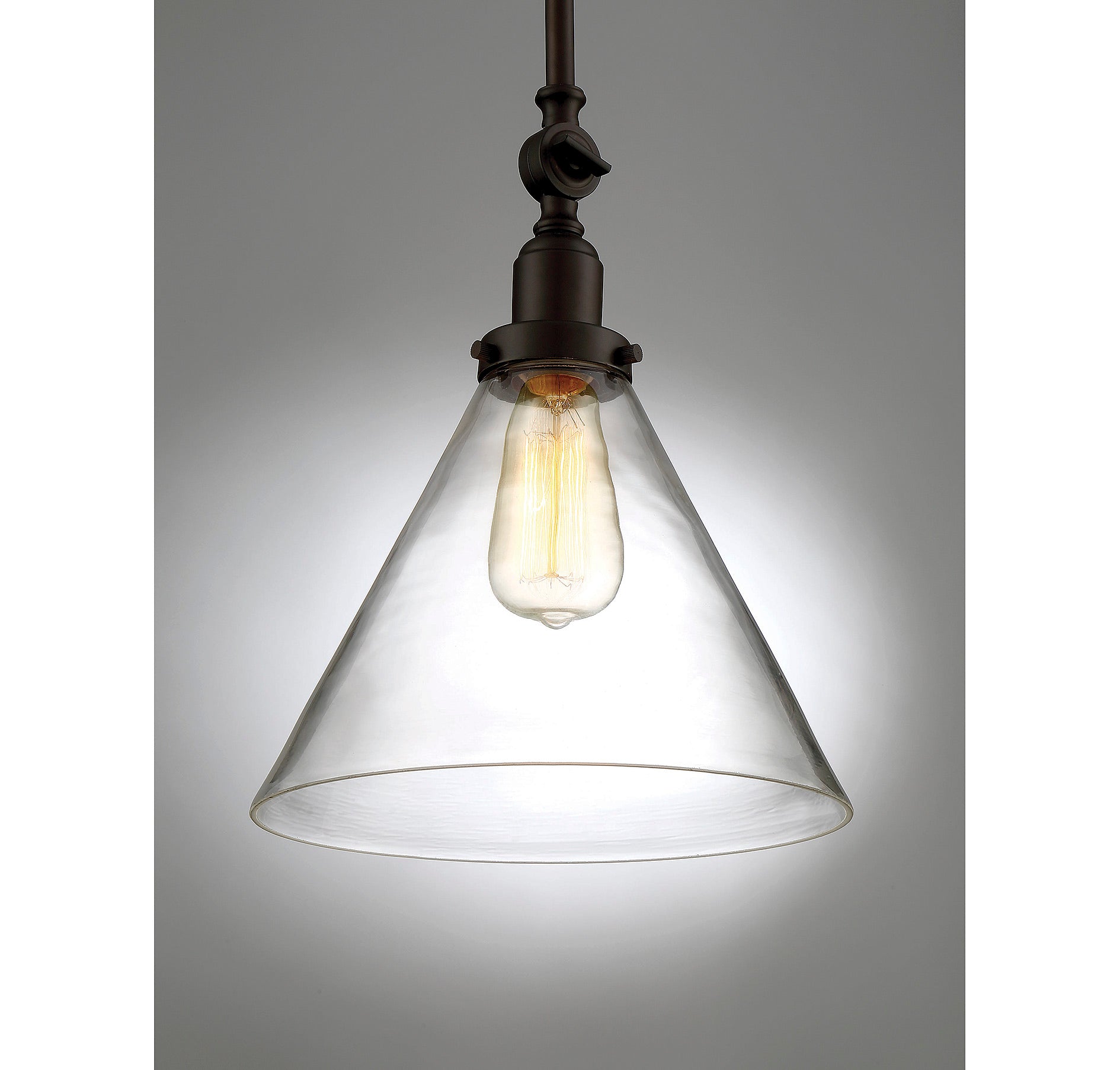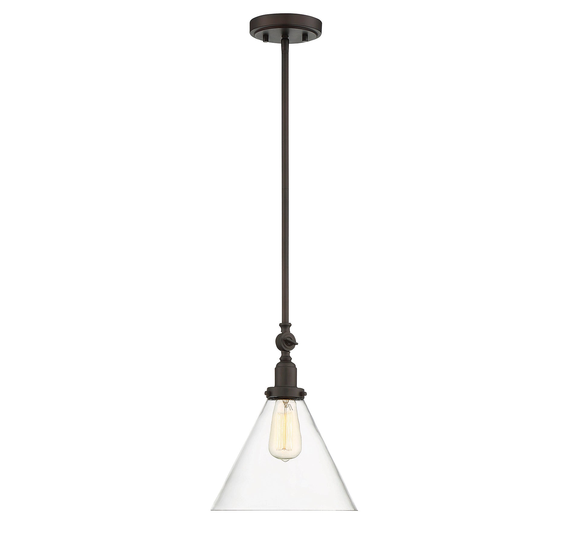This Savoy House Drake 1-light pendant has an alluringly simple style with a few choice hardware details and a shade of clear glass. It has a fully adjustable pendant head that allows for directional or targeted lighting. Finished in English bronze. Pendants are extremely versatile and can fit in many different spaces, such as kitchens, family rooms, great rooms, foyers, entryways, offices, bedrooms and bathrooms. This pendant comes with three 9.5-inch downrods, so you can get the perfect hanging height for your needs, and it can be hung on a sloped ceiling. Bulb not included. You can pair Drake with hardware finished in bronze or mix it with hardware in other finishes. Its understated looks means it is an excellent choice for a wide variety of decor styles. When you choose a Savoy House lighting fixture, you can be certain you've selected a piece that will withstand the test of time.