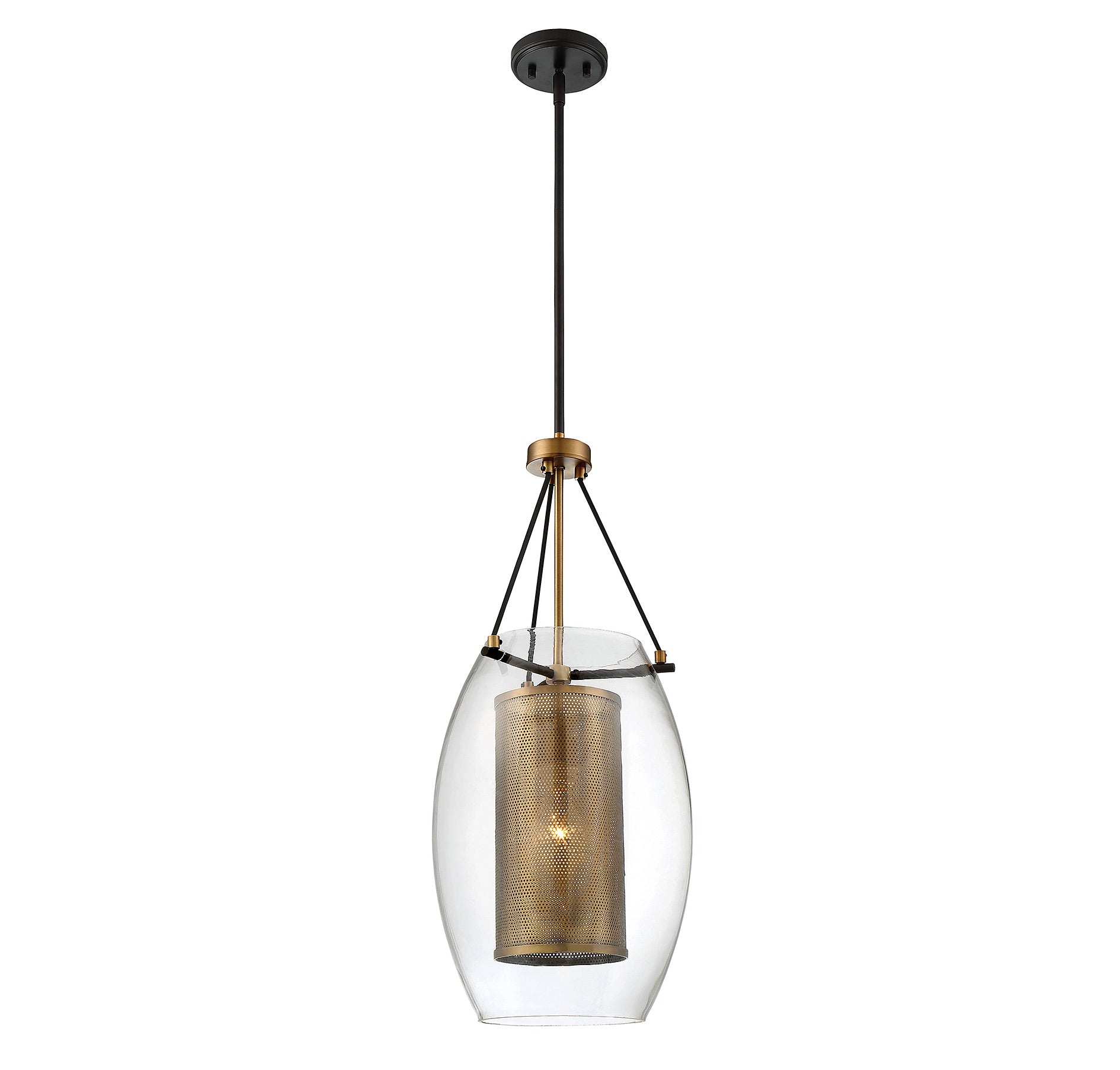 Ultra chic and current with its use of mixed metals, the fashionable Dunbar 1-light pendant was designed by Brian Thomas and manufactured with pride and precision by Savoy House. This contemporary light fixture features a warm brass mesh lantern covered by a clear glass oval and suspended by a sleek bronzed metal rod. It’s an intriguing design that looks great as bath lighting, entry lighting, over a stairway or in the kitchen. Made with premium quality components, it has an adjustable rod length and canopy that adapts to sloped ceilings. Hang one or hang several at varying heights for modern style lighting that moves! It’s an ideal interior lighting choice for transitional, contemporary, mid-century modern and industrial décors.