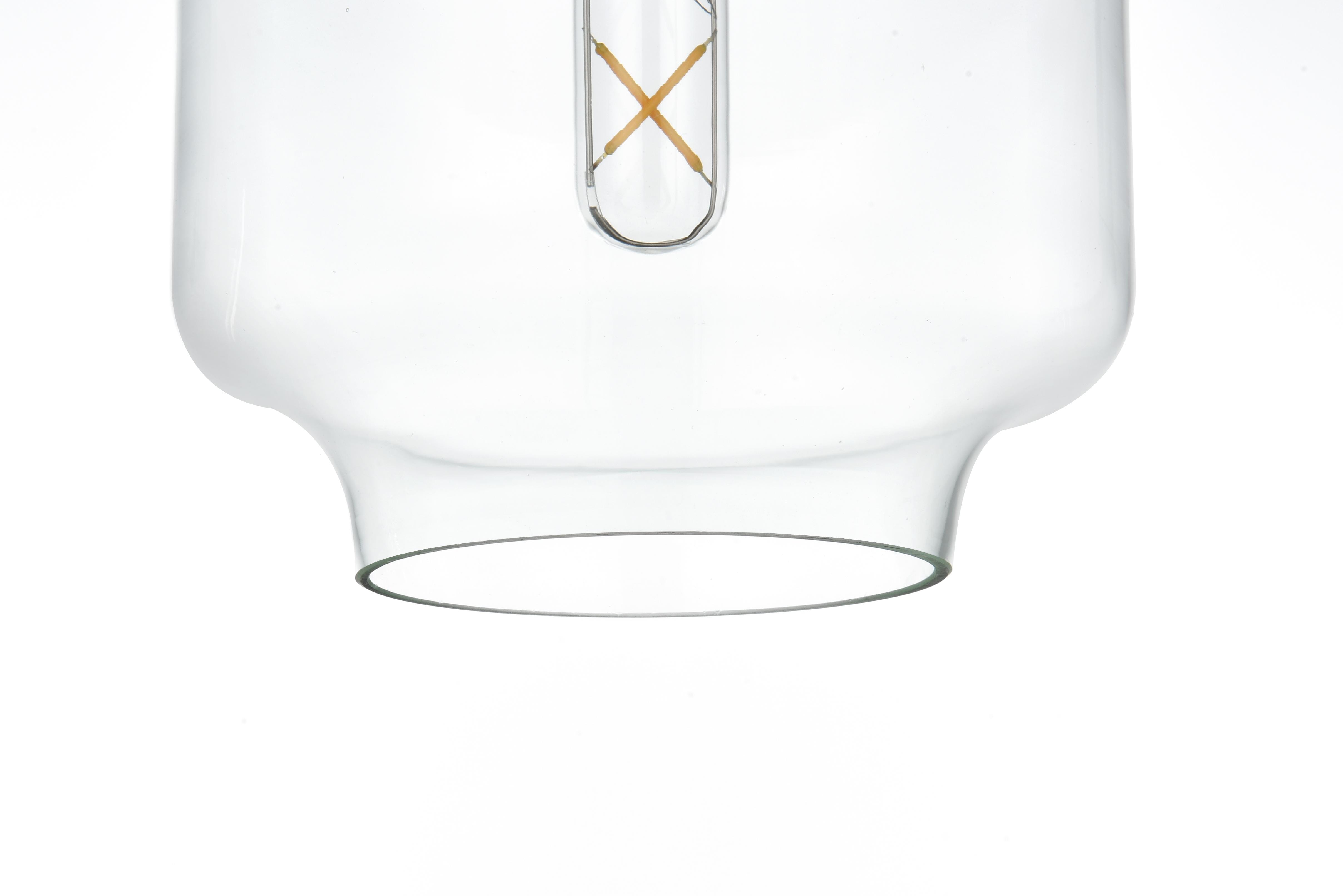 The perfect marriage of vintage charm and modern refinement, Ashwell pendant lamps blend well with décor from both Old World and New. A rounded iron frame in a satini gold finish comes with adjustable black hanging cord. The narrow cylindrical clear glass shade envelopes an E26 tubular filament bulb (not included) to complete the overall look. Ideal for a breakfast nook, kitchen, office, or studio.
