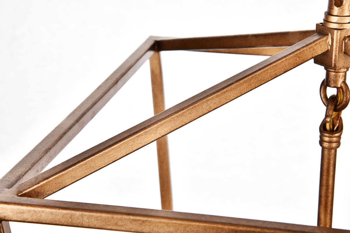The Maddox collection brings the warmth and charm of the classic “coach light” into your dining room, foyer, or family room. This universally familiar shape features four tapered, inverted trapezoids topped by a clear pyramidal canopy. Three medium-base E26 antique-style filament bulb (Not included) casts light in all directions. The sleek Metal frames and matching hanging chains are available in vintage Gold. These cozy pendant lamps complement any home’s décor.