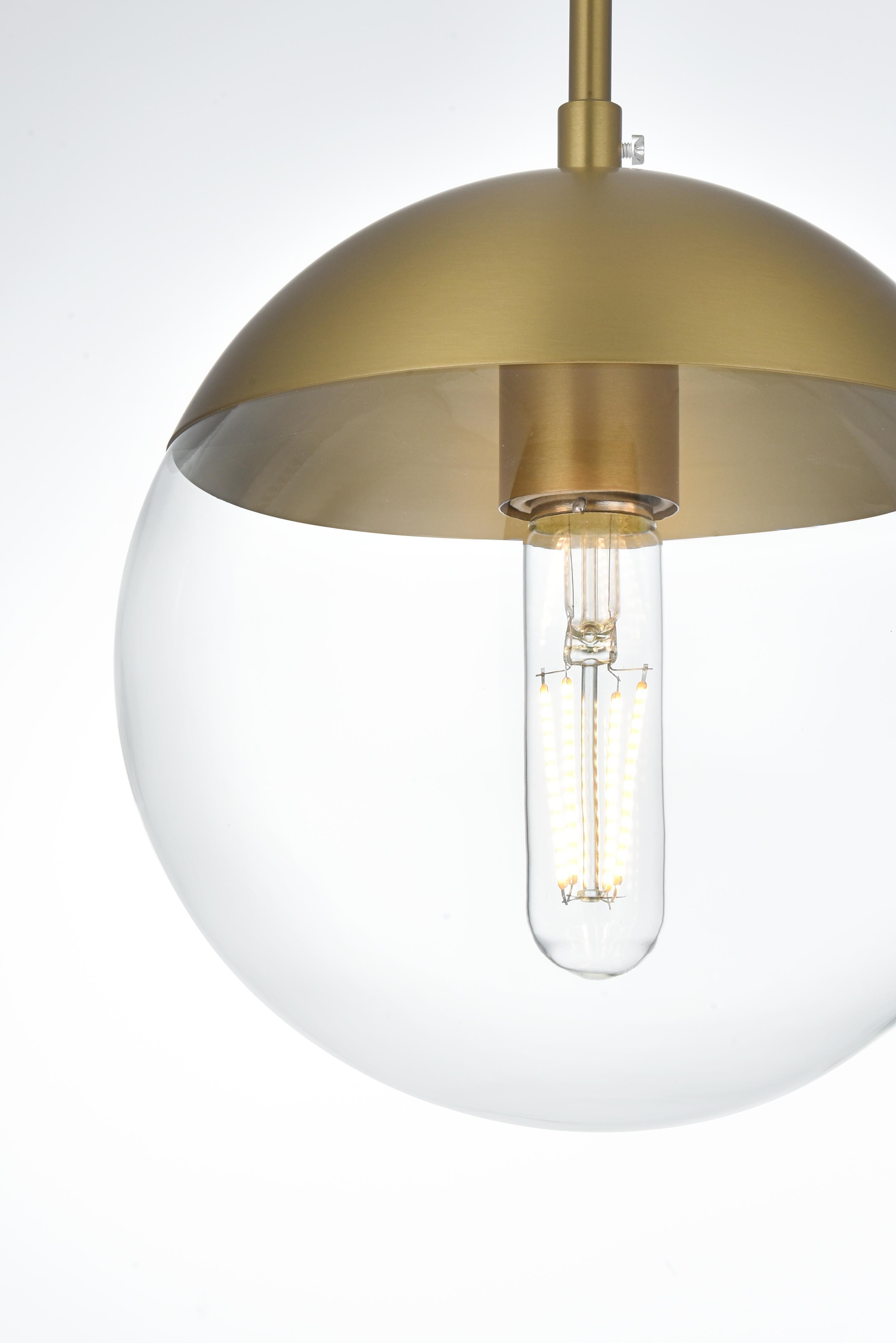 Clean lines and modern whimsy--that's the Eclipse Collection of pendant lamps. Its single light makes it perfect for any small apartment or room space, but its also a perfect addition to any larger rooms that requires illumination, such as a dining room or living room. Available in a satin gold, black, chrome, or brass finish with either a round clear or frosted white glass shade, it won't be too hard to fit this versatile lighting fixture in your home (light bulbs not included).