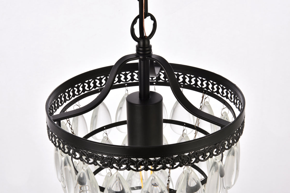 This one light pendant is sure to look great in your space. The circular canopy, hanging chain, and socket are made from metal of your choice of finish. It features a cascading tiers of crystal drops that encases one medium socket. This fixture takes one 40W bulb, (not included) that wash your space in a bright glow. It's compatible with a dimmer switch, so you'll always have the right amount of light no matter the time of day.