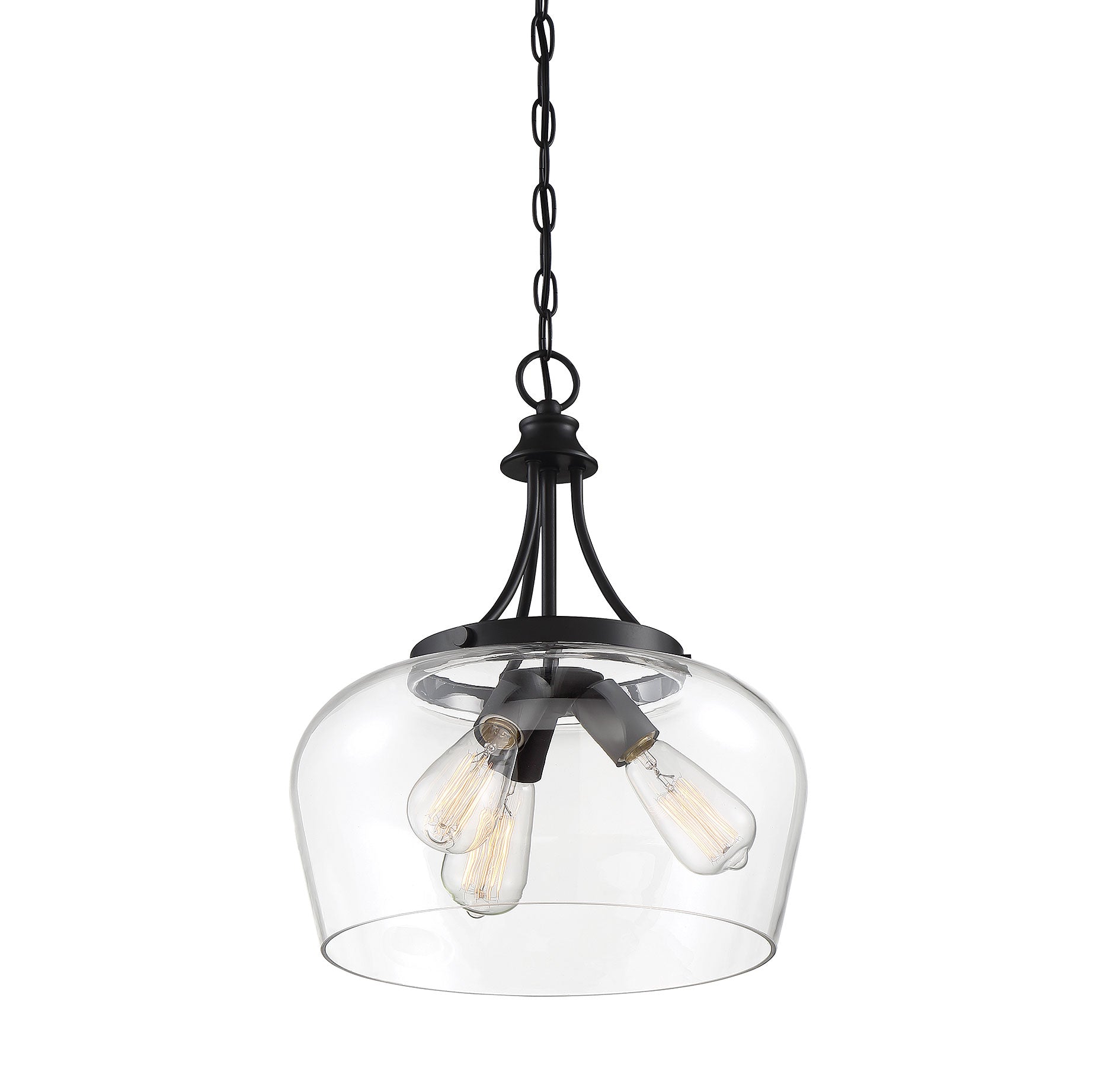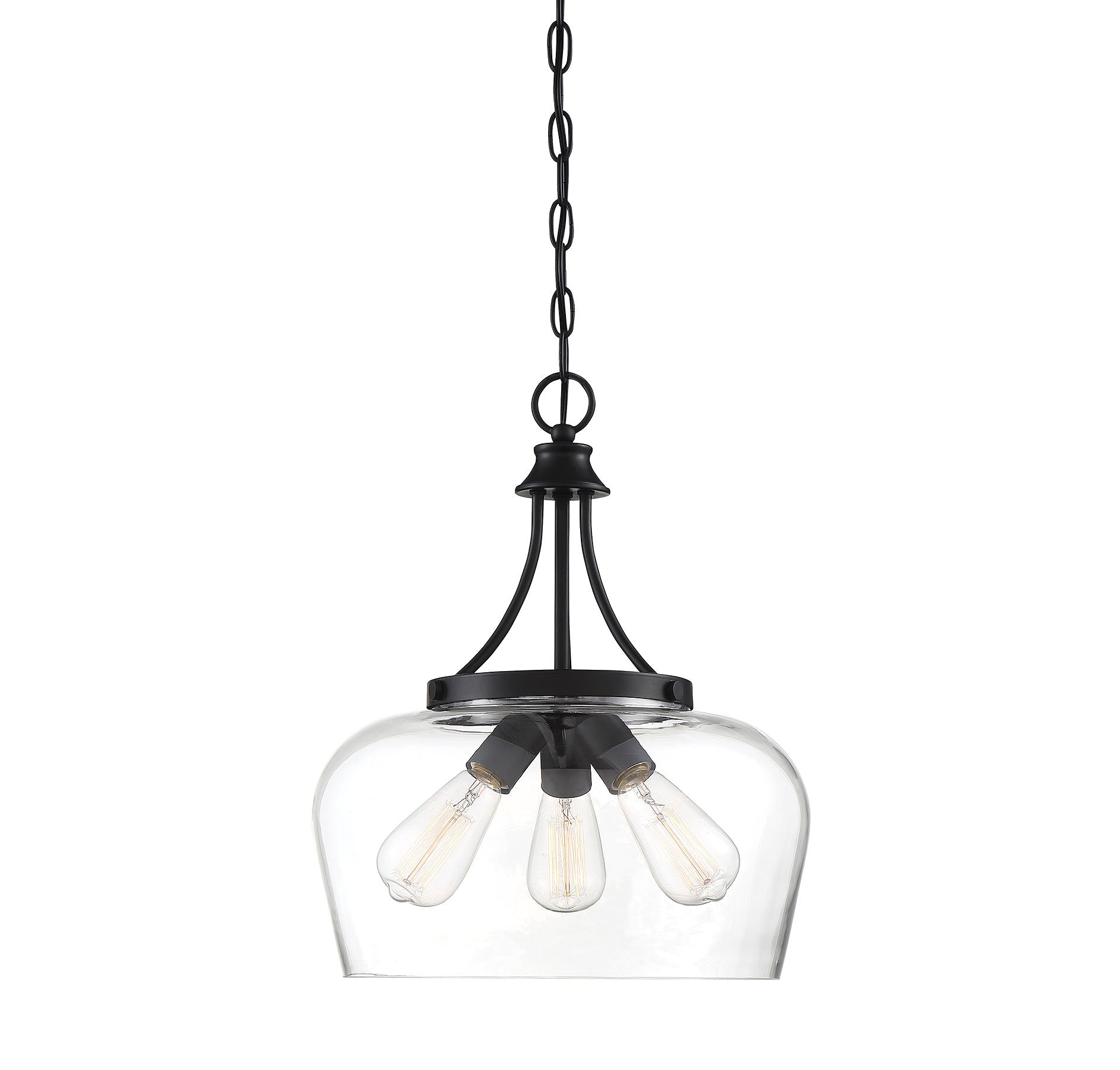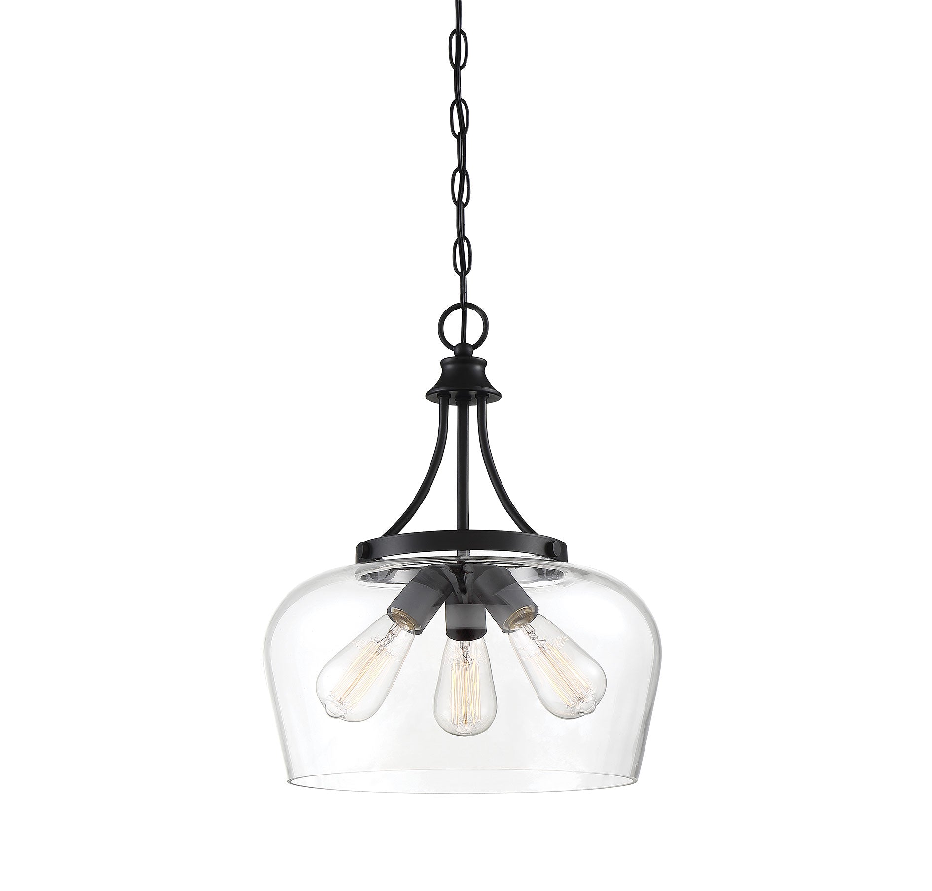 In the Savoy House Octave 3-light chandelier, bold black lines and a streamlined silhouette create an air of elegance and sophistication. The matte black finish and clear glass shade go with absolutely everything. If you have traditional, contemporary, transitional, vintage, modern farmhouse, industrial-inspired or an eclectic mix in your home, you’ll love the way this Octave pendant will stylishly fit right in. This 15" wide by 18" high fixture connects with a chain to adjust hanging height. Three standard-size bulbs will provide lovely illumination in your space, whether in a dining area, living room, entryway or bedroom.