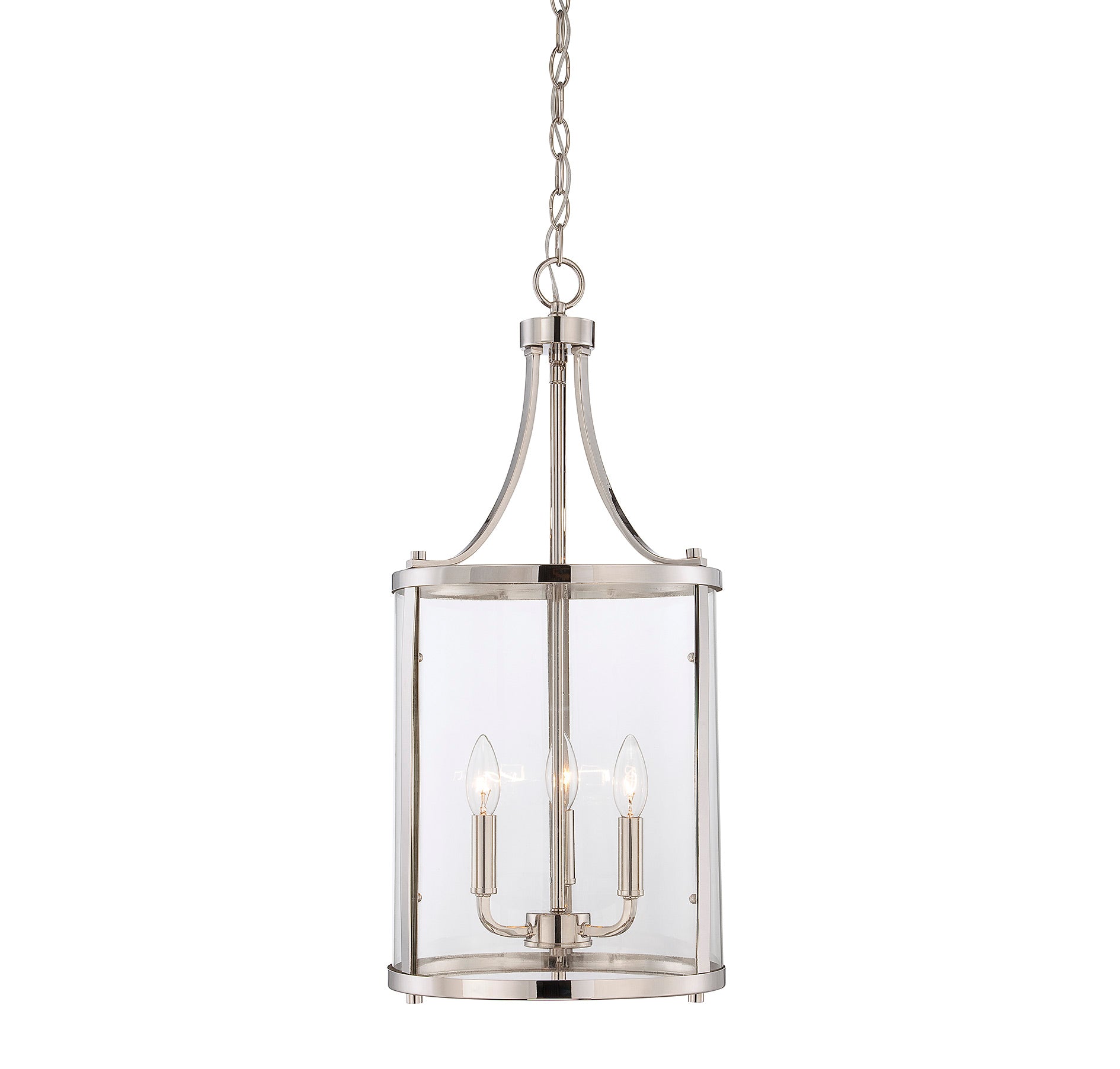 This sleek, cylindrical Penrose 3-light foyer light from Savoy House is an excellent choice for lovers of stylish modern design. It features clear glass and is finished in shining polished nickel. Foyer lights are often used in foyers and entryways, but can also be used in great rooms, kitchens, offices and bedrooms too! Bulbs not included. Try using stylized bulbs for a different look! The polished nickel finish can be matched with nickel hardware or mixed with hardware in other finishes. Bring Penrose into rooms of any style, especially transitional or classic, for a big touch of lighting allure. When you choose a Savoy House lighting fixture, you can be certain you've selected a piece that will withstand the test of time.