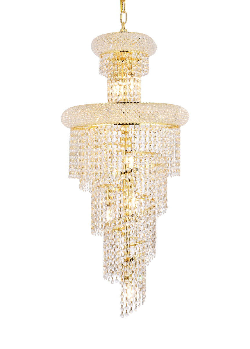 Spiral 10 light Gold Pendant Clear Royal Cut Crystal