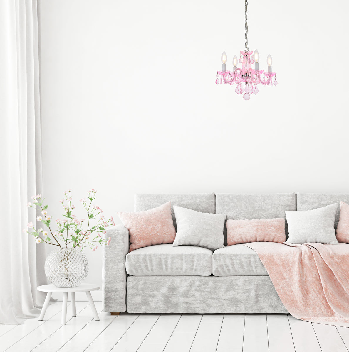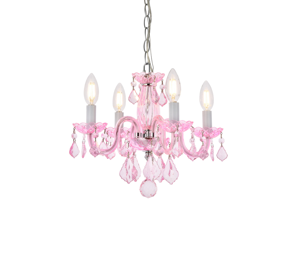 Rococo 4 light Pink Pendant Rosaline (Pink) Royal Cut Crystal