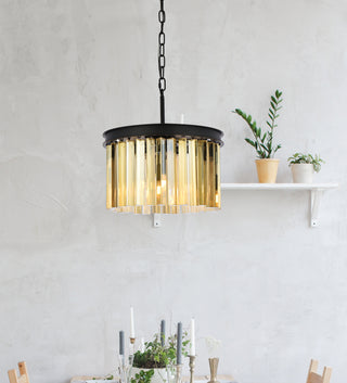 Madison 3 light Matte Black Pendant Golden Teak (Smoky) Royal Cut Crystal