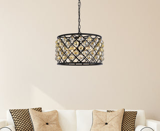 Madison 4 light Matte Black Pendant Golden Teak (Smoky) Royal Cut Crystal