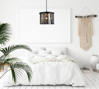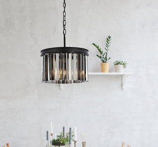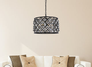 Madison 4 light Matte Black Pendant Silver Shade (Grey) Royal Cut Crystal