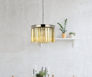 Madison 6 light polished nickel Pendant Golden Teak (Smoky) Royal Cut Crystal