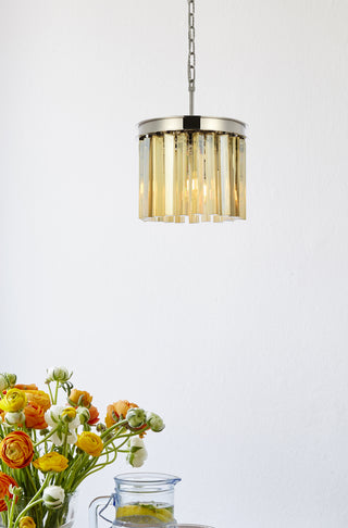 Sydney 3 light polished nickel Pendant Golden Teak (Smoky) Royal Cut Crystal