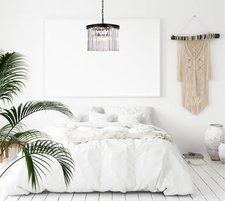 Madison 4 light Matte Black Pendant Silver Shade (Grey) Royal Cut Crystal