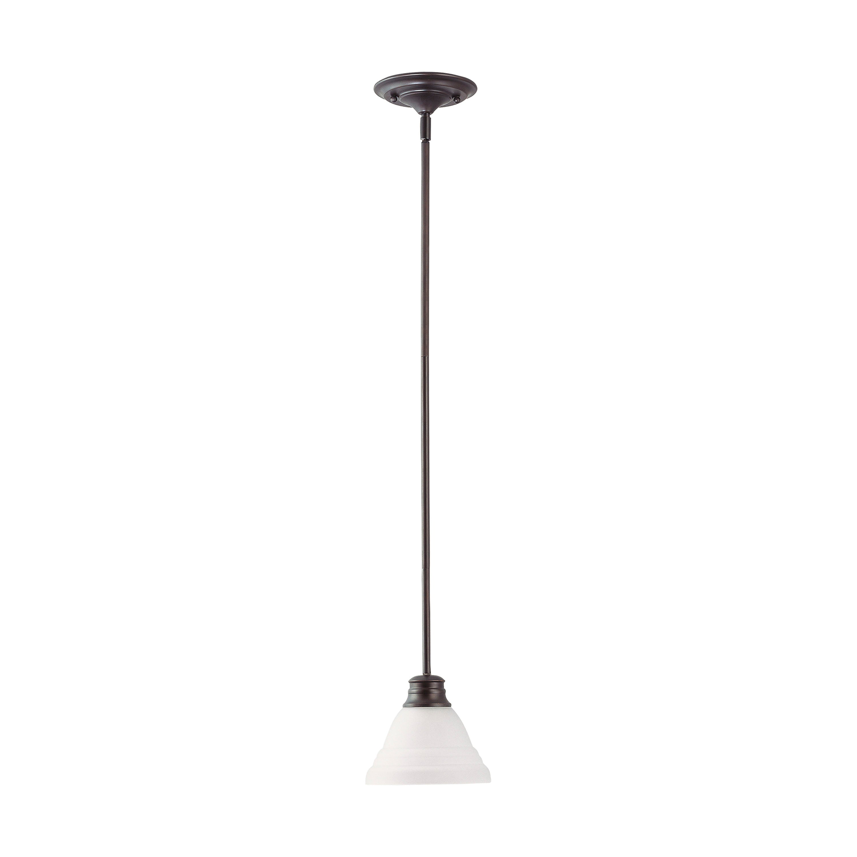The Empire 1 light, 7 inch pendant features a deep rich mahogany bronze finish, accented by frosted white glass. Illuminate hallways, foyers, or any room in the home that could use some extra lighting with this easy to install pendant. Stylish and elegant, impress your guests with this sophisticated pendant fixture.