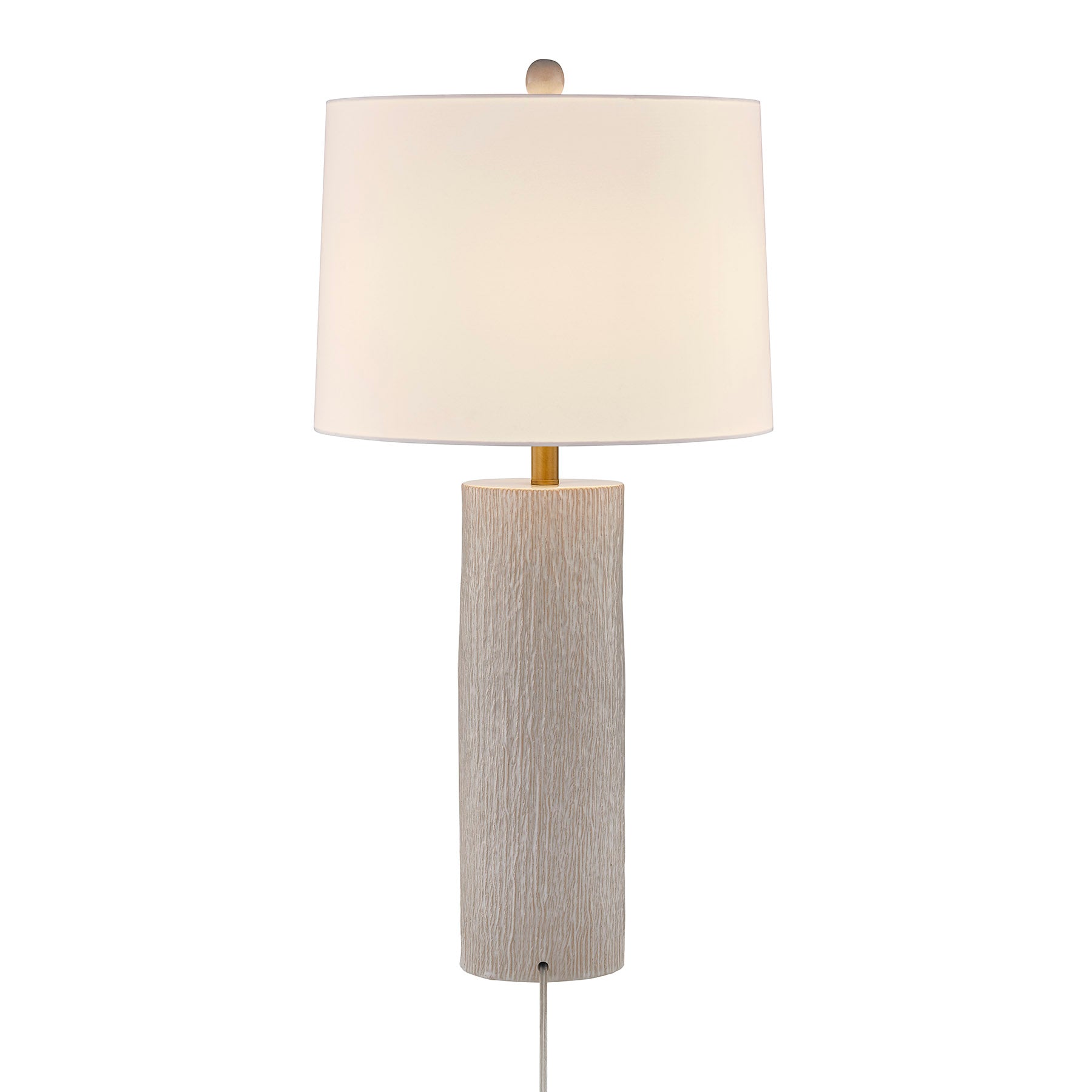 This superbly slender Amanda table lamp from Coco & Dash showcases a tall ceramic column and a cylindrical white fabric shade, creating a bold style that is ideal for any space. Plated brass details add a touch of timelessness. This lamp is 32" in height and 17" in width. It uses one standard size bulb of up to 100 watts. Bulb not included.