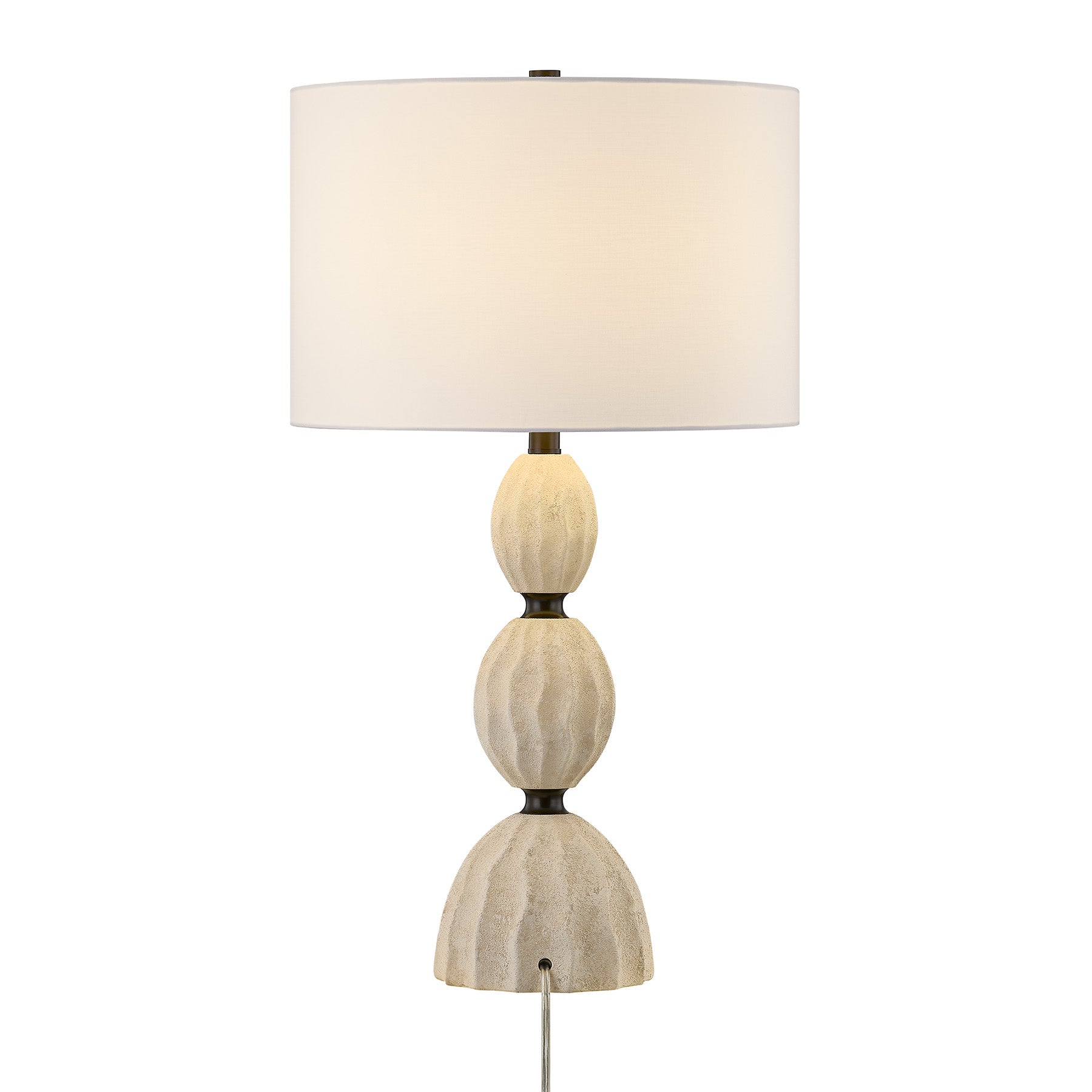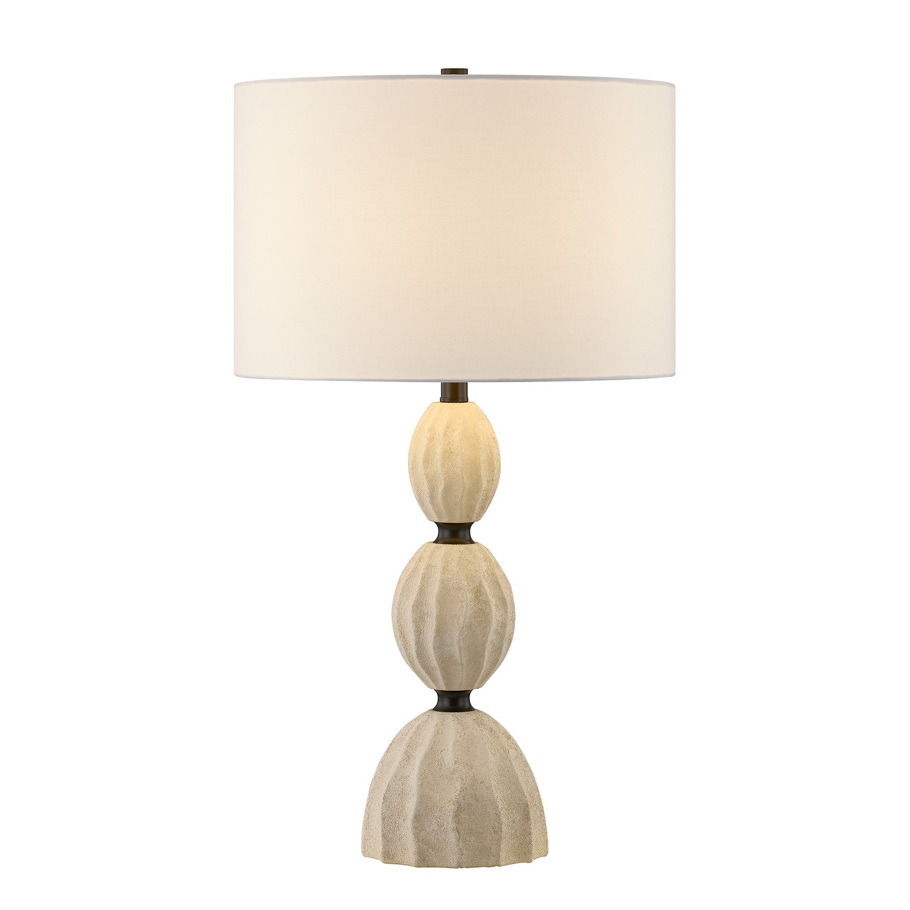 The Savoy House Leiden 1-light table lamp was designed by Dann Foley, an award-winning interior designer with a reputation for style, taste and quality. Its shapely ceramic body showcases touchable texture and graceful, organic appeal. A soft white fabric shade and Mediterranean Bronze finish complete the look. Leiden is 28.5" in height and 16" in width. It uses one standard size bulb of up to 100 watts. Bulb not included.