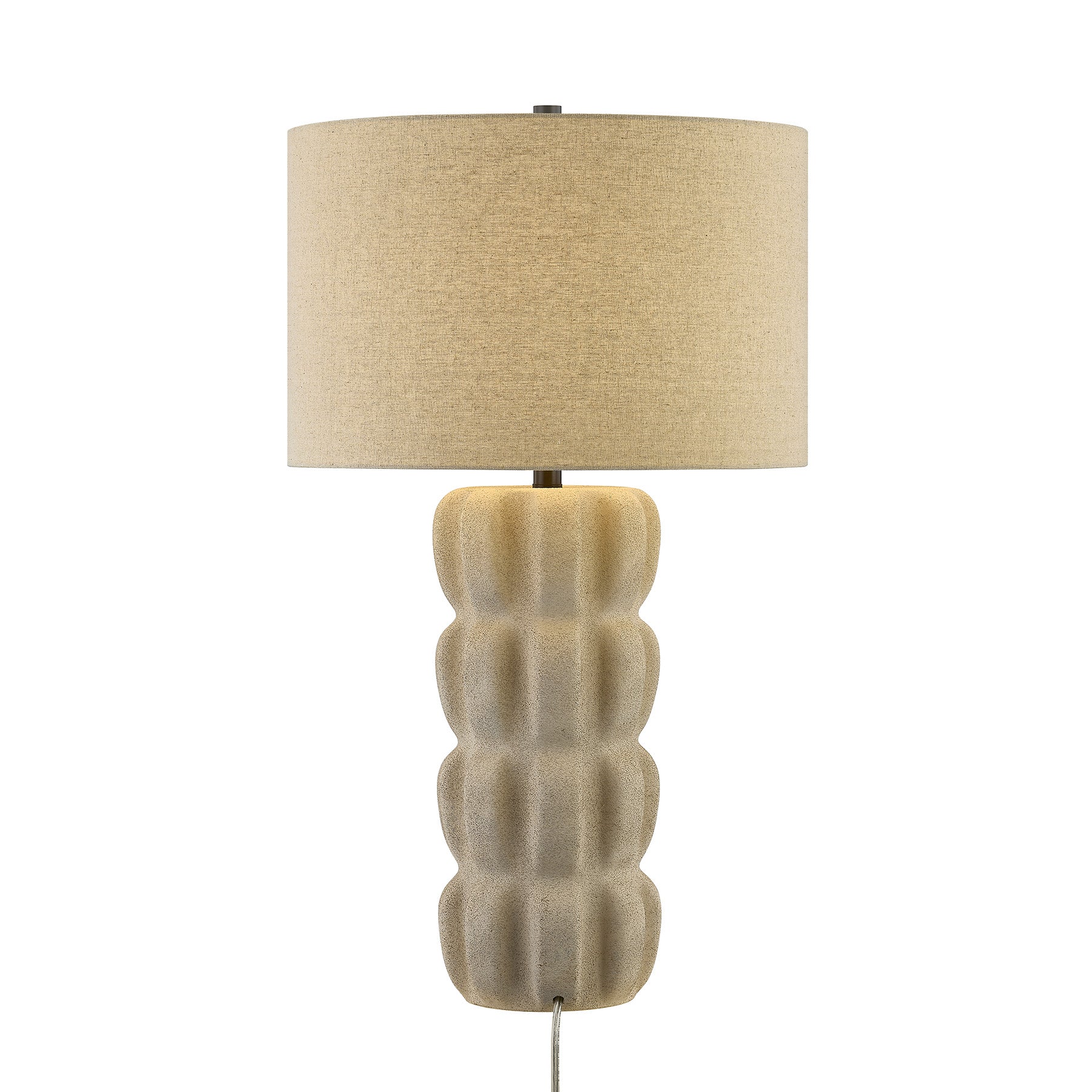 The Savoy House Haddington 1-light table lamp, designed by award-winning interior designer Dann Foley, brings sculptural warmth to any room. Its ceramic body features raised half-moon accents that add irresistible texture and an organic sense of movement. A soft sand fabric shade pairs beautifully with the Mediterranean Bronze finish to create a grounded, natural glow that feels right at home in today's curated spaces. Haddington is 30.5" in height and 18" in width. It uses one standard size bulb of up to 100 watts. Bulb not included.