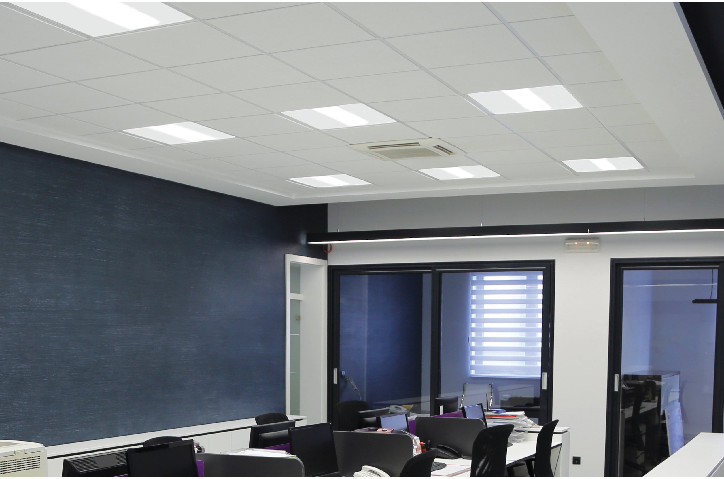 A two foot by two foot single basket troffer which feature selectable wattage and color temperature. The troffer features an acrylic linear prismatic lens which allows for broad, even light distribution. The driver allows for flicker-free illumination, and the troffer drops into a T-bar grid.