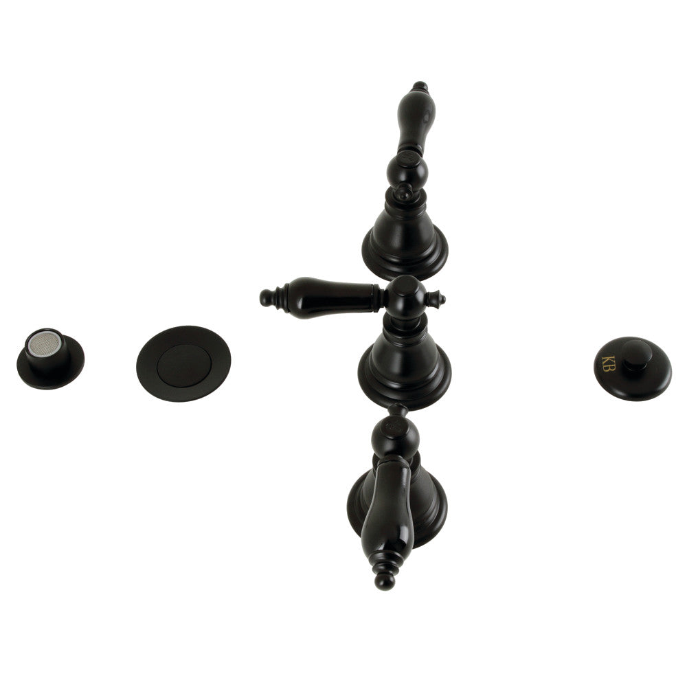 Crafted in commendations to English nobility, the exemplary design of this faucet manifests regality and elegance with its black porcelain handles. For ease of cleansing, bidet faucets are specific for use with bidets, often having water sprayed from above or below. The Duchess three-handle vertical spray bidet faucet and its featured sturdy brass construction and premium matte black finish are guaranteed to bring functionality and form to your home's traditional ensemble for years to come. Glamorize your home today with the traditional elegance of this faucet. A matching finish pop-up drain with lift rod is also included.