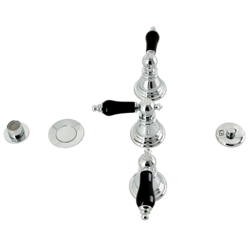 Crafted in commendations to English nobility, the exemplary design of this faucet manifests regality and elegance with its black porcelain handles. For ease of cleansing, bidet faucets are specific for use with bidets, often having water sprayed from above or below. The Duchess three-handle vertical spray bidet faucet and its featured sturdy brass construction and premium polished chrome finish are guaranteed to bring functionality and form to your home's traditional ensemble for years to come. Glamorize your home today with the traditional elegance of this faucet. A matching finish pop-up drain with lift rod is also included.