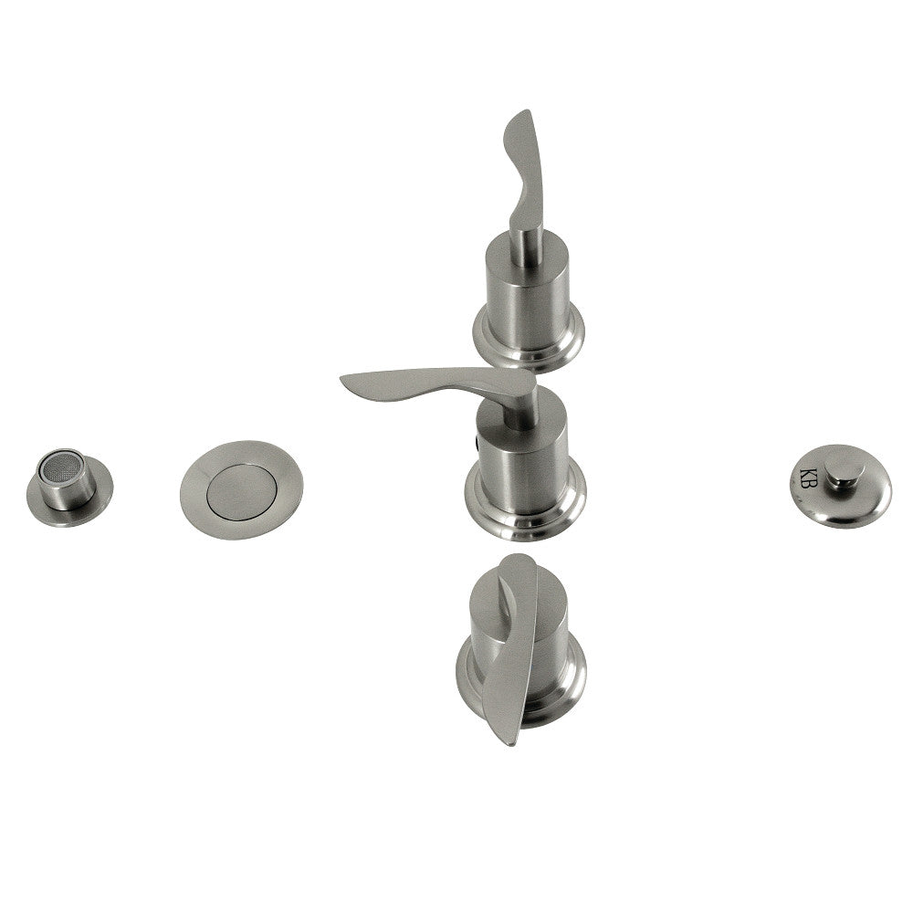 This faucet's modern features create a bold and edgy design in your bathroom. For ease of cleansing, bidet faucets are specific for use with bidets, often having water sprayed from above or below. The Serena three-handle bidet faucetand its featured sturdy brass construction and premium brushed nickel finish are guaranteed to bring functionality and form to your home's modern ensemble for years to come. A matching finish drain is also included.