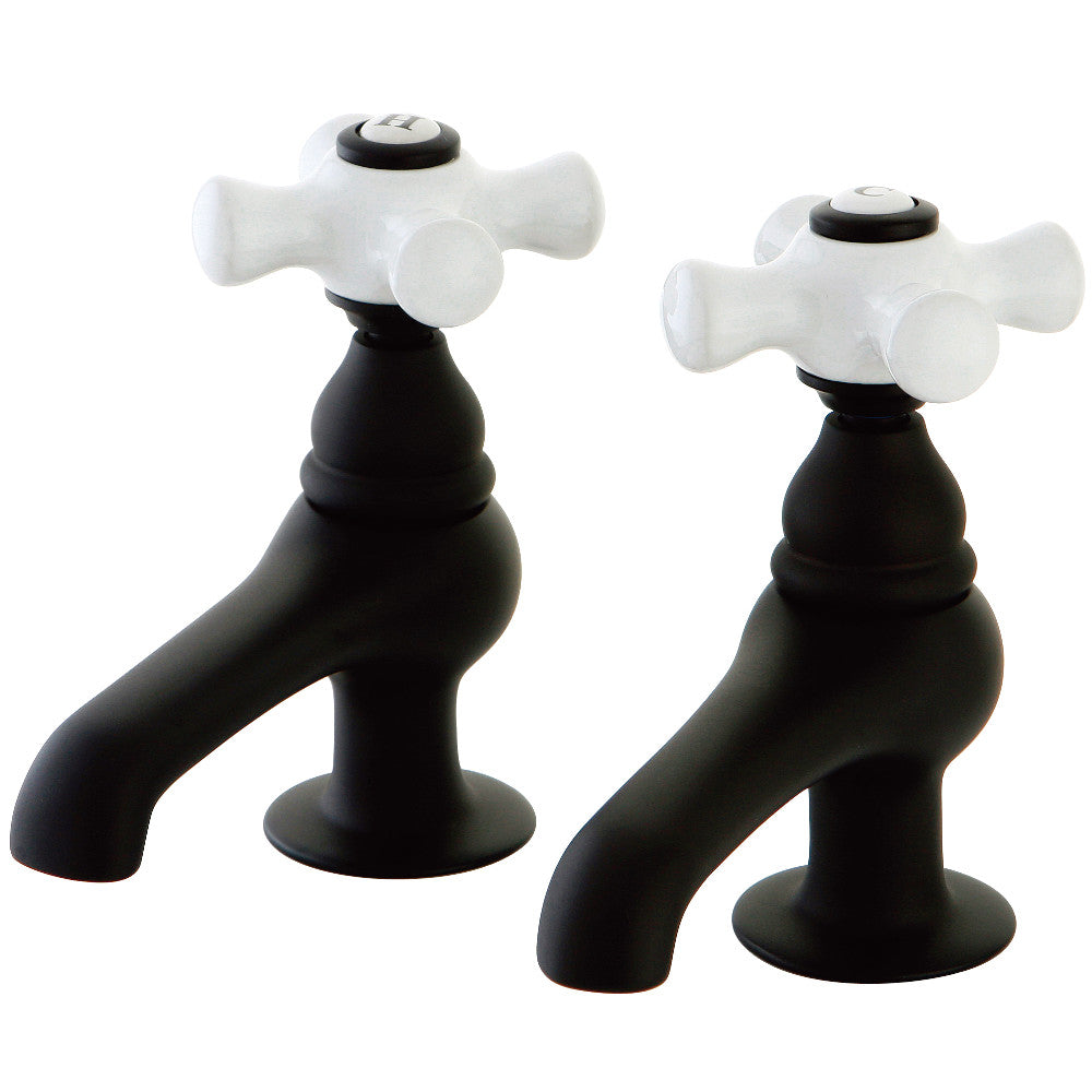 Classical artistry from the late 19th Century to early 20th Century is mirrored beautifully within this faucet's traditional charm. Basin tap faucets are a traditional design that allows users to mix water to their desired temperature within the sink basin. With cross handles for ease of use, the perfect temperature can be acquired with the separate cold and hot water taps. The Restoration Basin Tap Faucet and its featured sturdy brass construction and premium oil rubbed bronze finish are guaranteed to glamorize your home's traditional ensemble for years to come. Bring this faucet to your home to offer a touch of old design and exquisite detail.