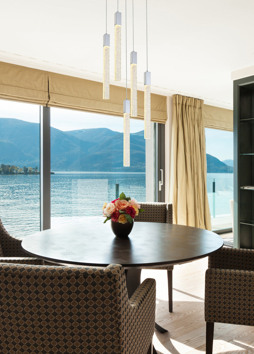 Crystal raindrops floating in a crystal bar balanced in mid-air. Everything about our Weston Collection is ethereal. This collection can be placed in any room of your home as an accent or as a primary feature. When lit up in the evening they are truly an amazing sight, sure to add the wow factor to your home or workplace.